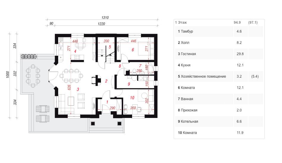 Материал стен: | керамический пустотелый блок Porotherm 25 см (или газобетон), утеплитель-пенопласт 20 см |