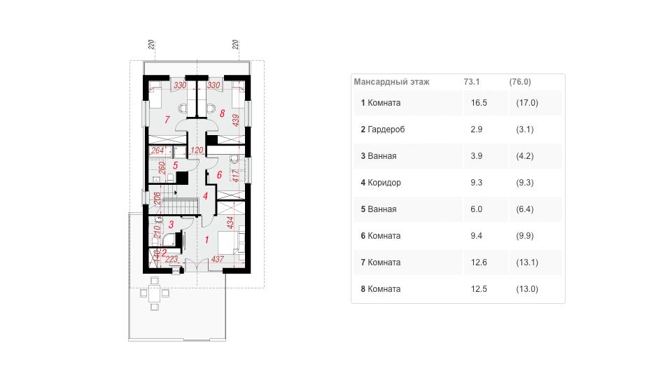 Материал стен: | пустотелый керамический блок (или газобетон) 25 см, пенопласт 14 см |
