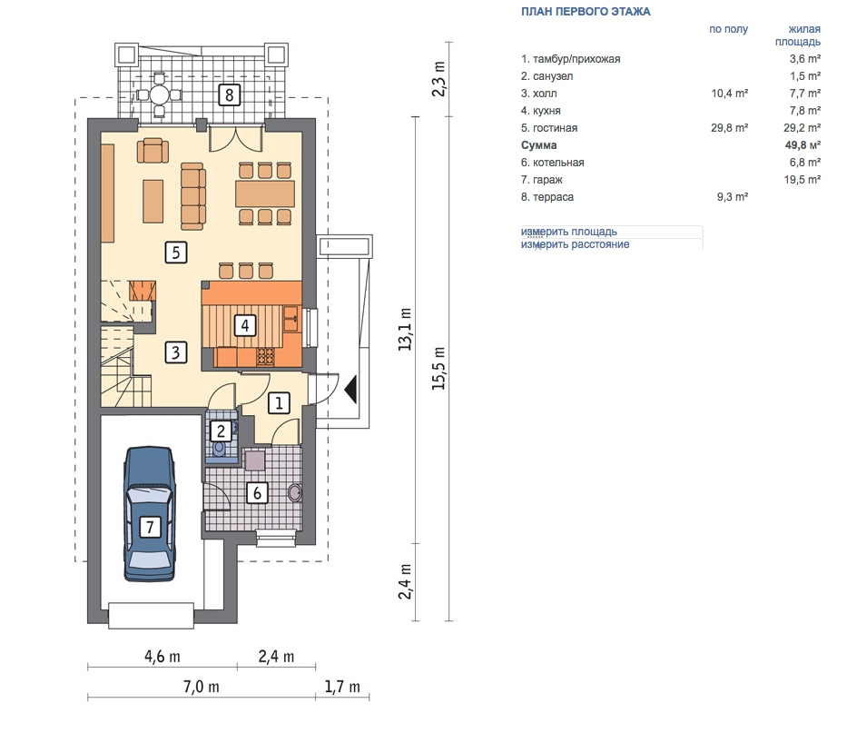 Фасад: | штукатурка, камень, мозаичная штукатурка |