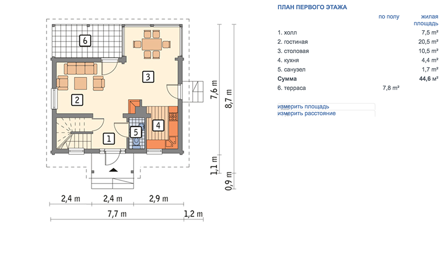 | Габариты дома: | 7.70 x 7.60 м |