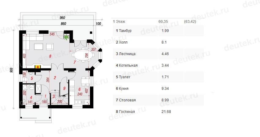 | Габариты дома: | 9.60 x 9.10 м |