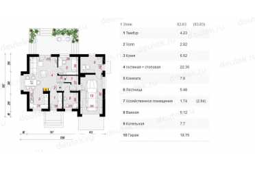 | Материал стен: | пустотелый керамический блок (или газобетон) 25 см |