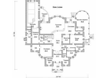 | Фасад: | цветная фасадная штукатурка, декоративная фасадная плитка, детали из натурального камня |