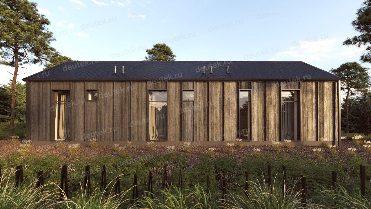 | Фасад: | штукатурка, облицовка планкеном, рейки |