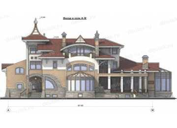 | Фасад: | “рваным” камнем, деревянные кронштейны |
