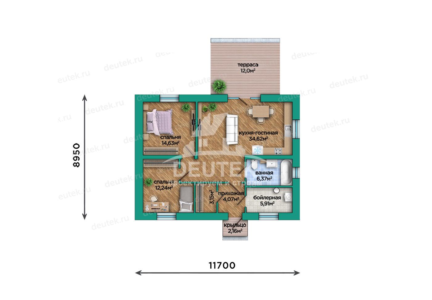 Габариты дома: 11.70 x 8.95 м