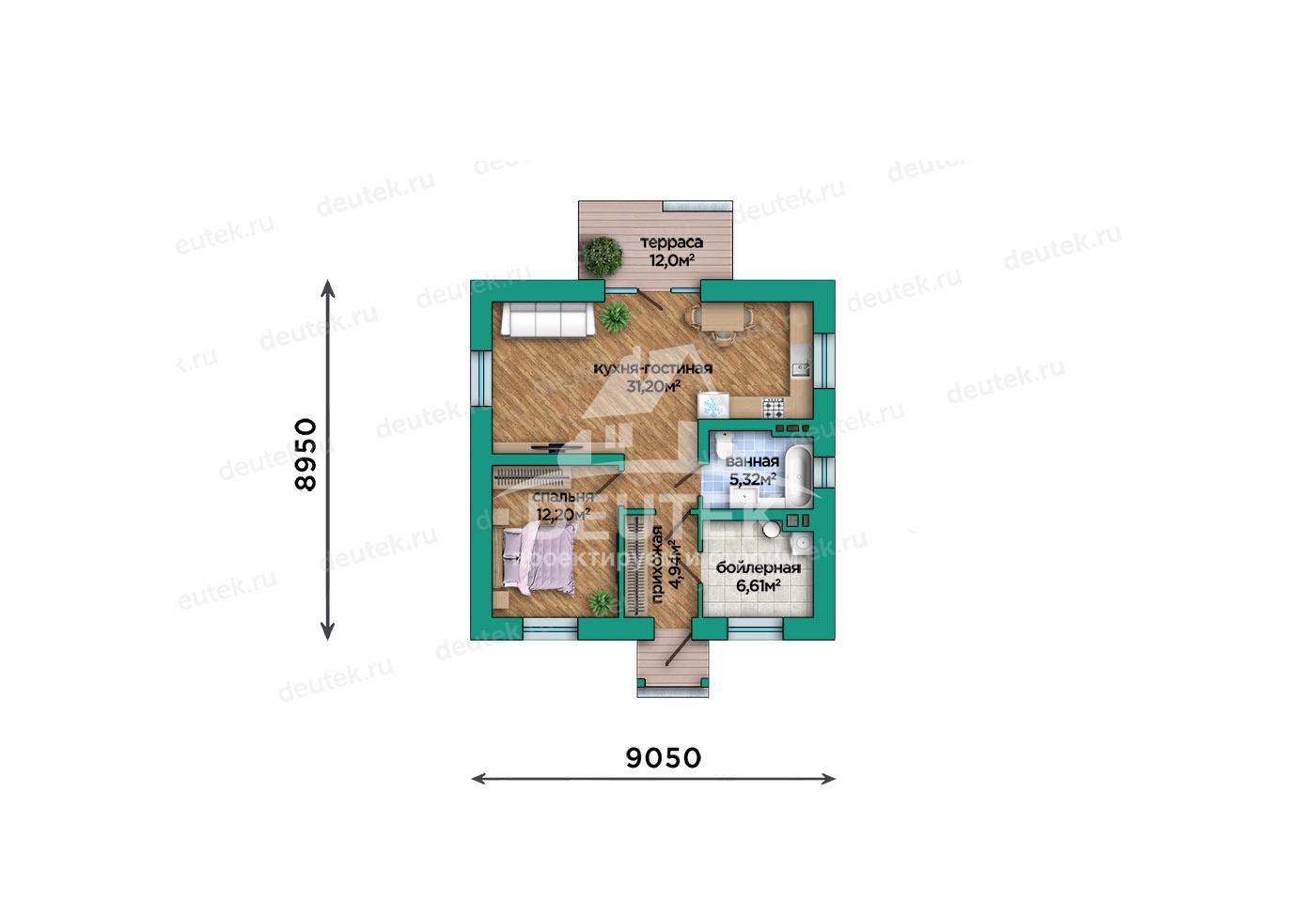 Проект загородного квадратного одноэтажного дома с одной спальней - LK-288