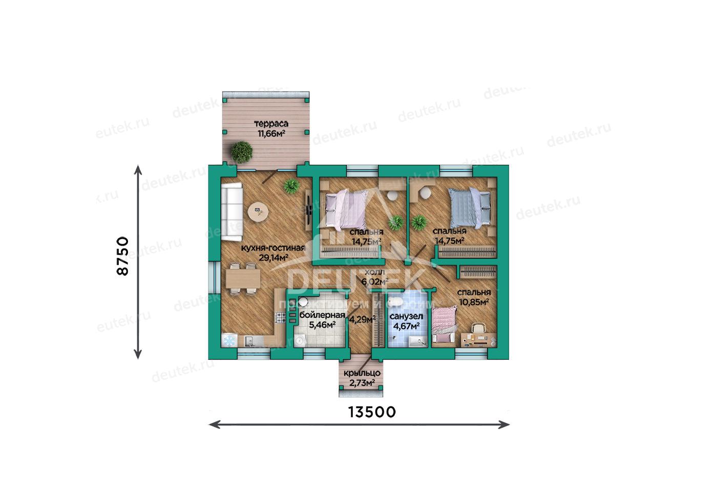 Проект загородного одноэтажного дома с размерами 13 м на 11 м - LK-294