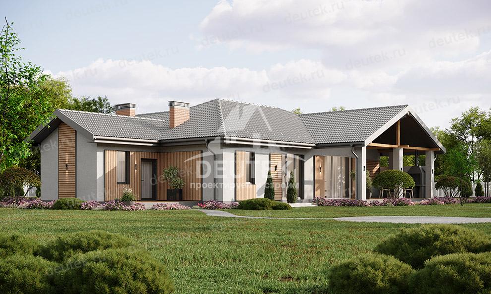 Проект загородного одноэтажного дома с баней и двумя террасами - LK-301