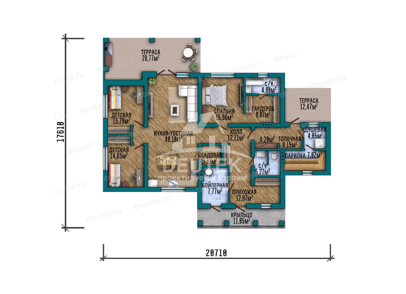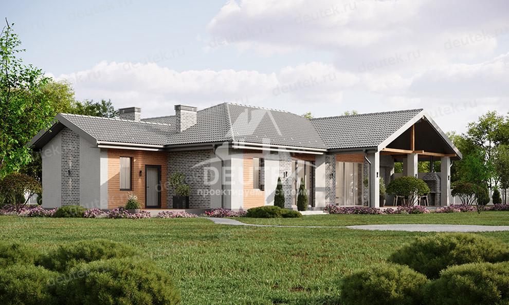 Проект загородного одноэтажного дома с баней и двумя террасами - LK-312