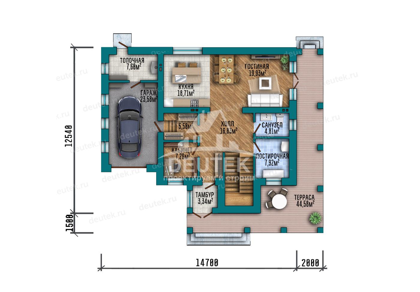 Габариты дома: 14.04 x 16.70 м