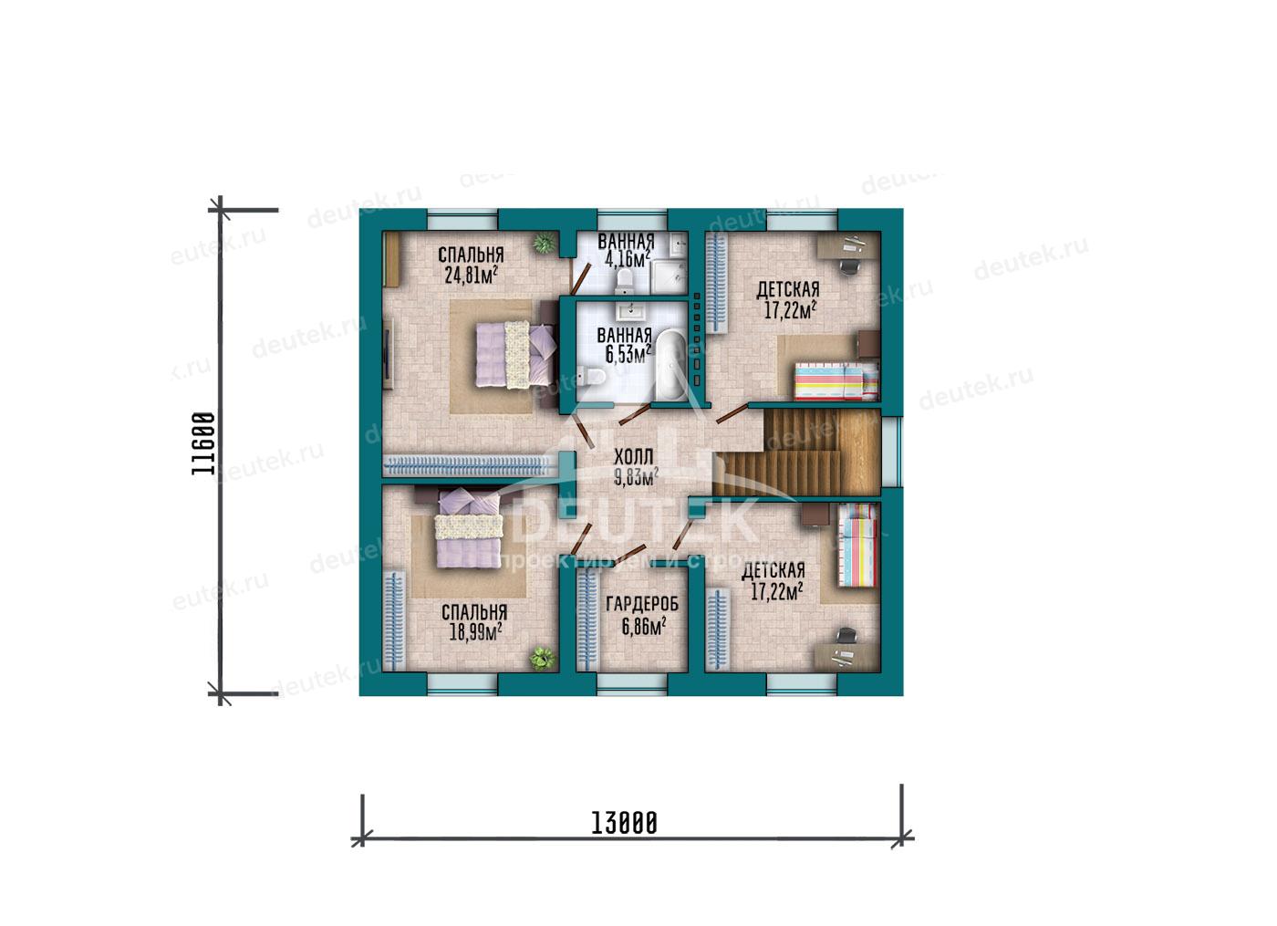 Габариты дома: 13.00 x 11.60 м