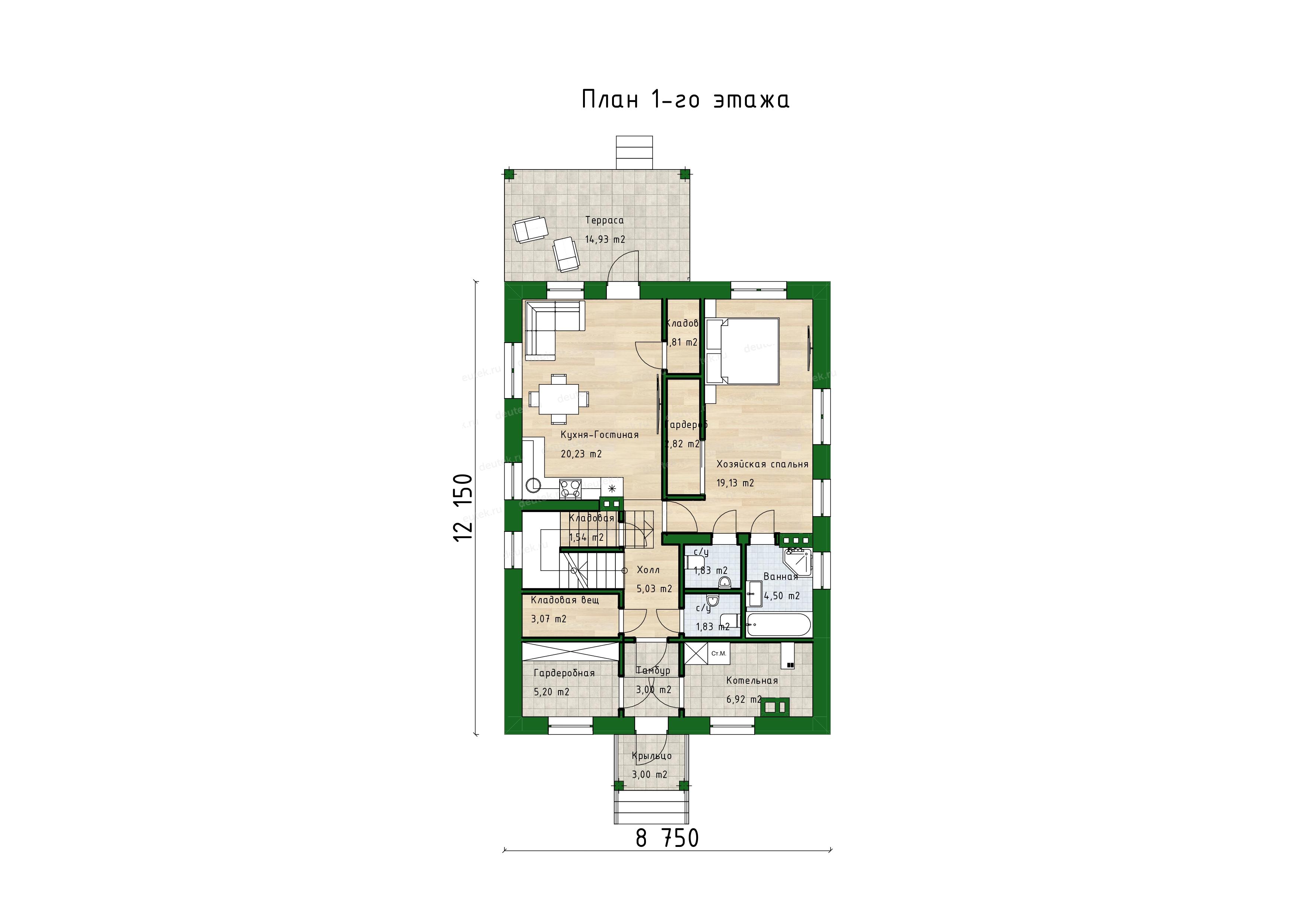 Материал стен: | газобетонный блок D500 B3,5 – 375 мм. с наружным утеплением минватой 100 мм |
