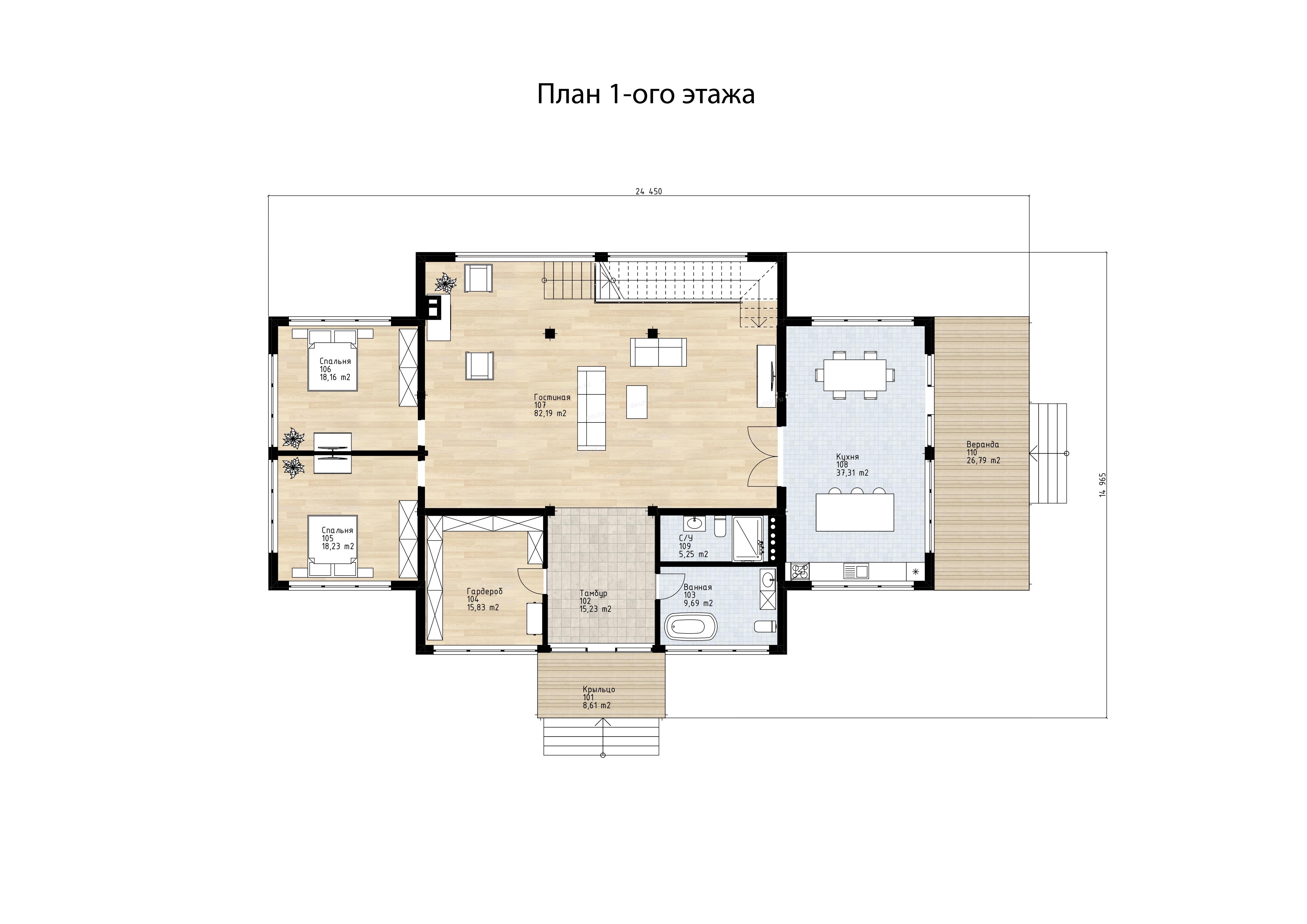 Фасад: | штукатурка; цоколь - декоративный камень |