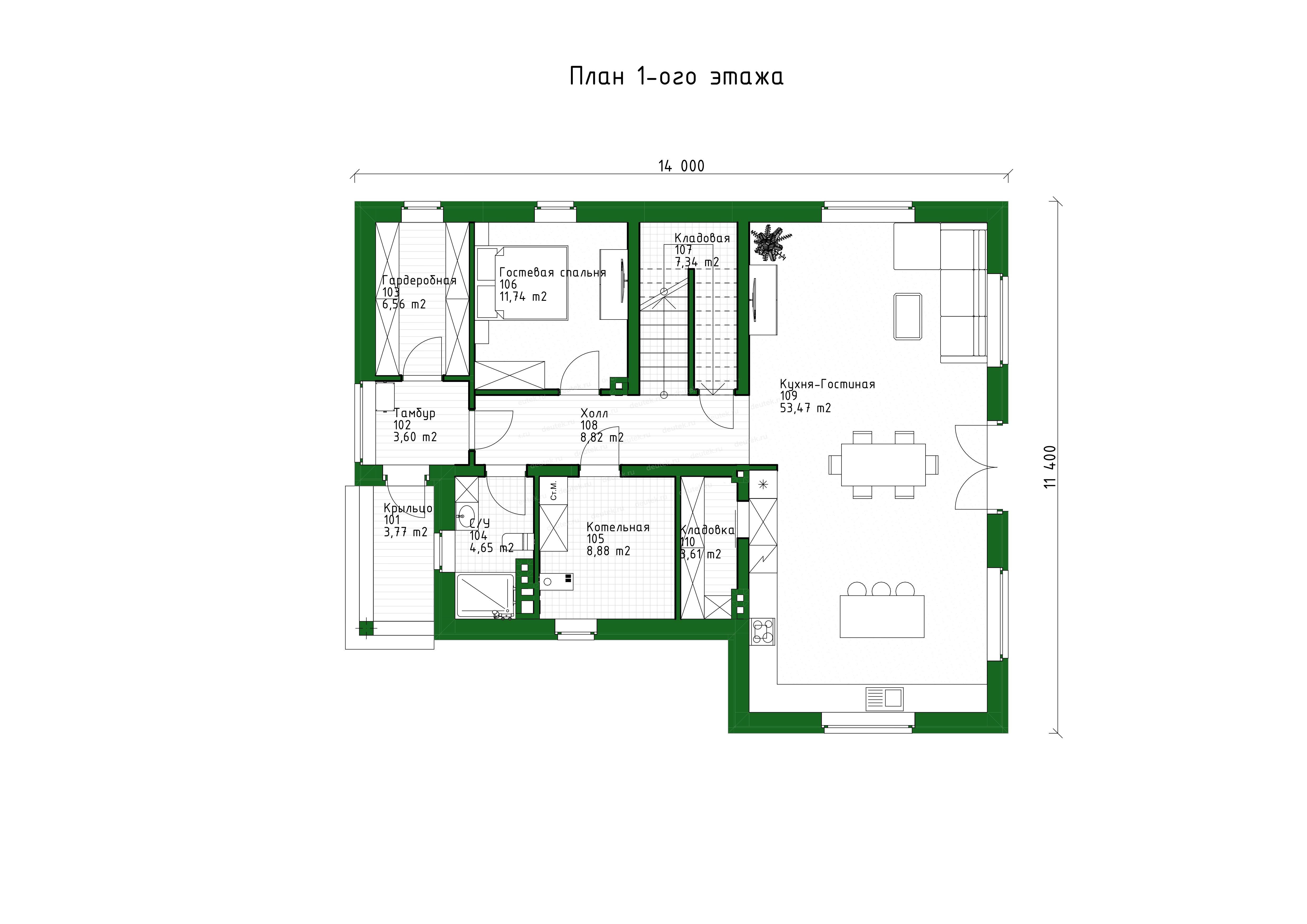 Материал стен: | газобетонный блок - 300 мм, вентзазор – 30 мм, облицовочный кирпич – 120 мм |