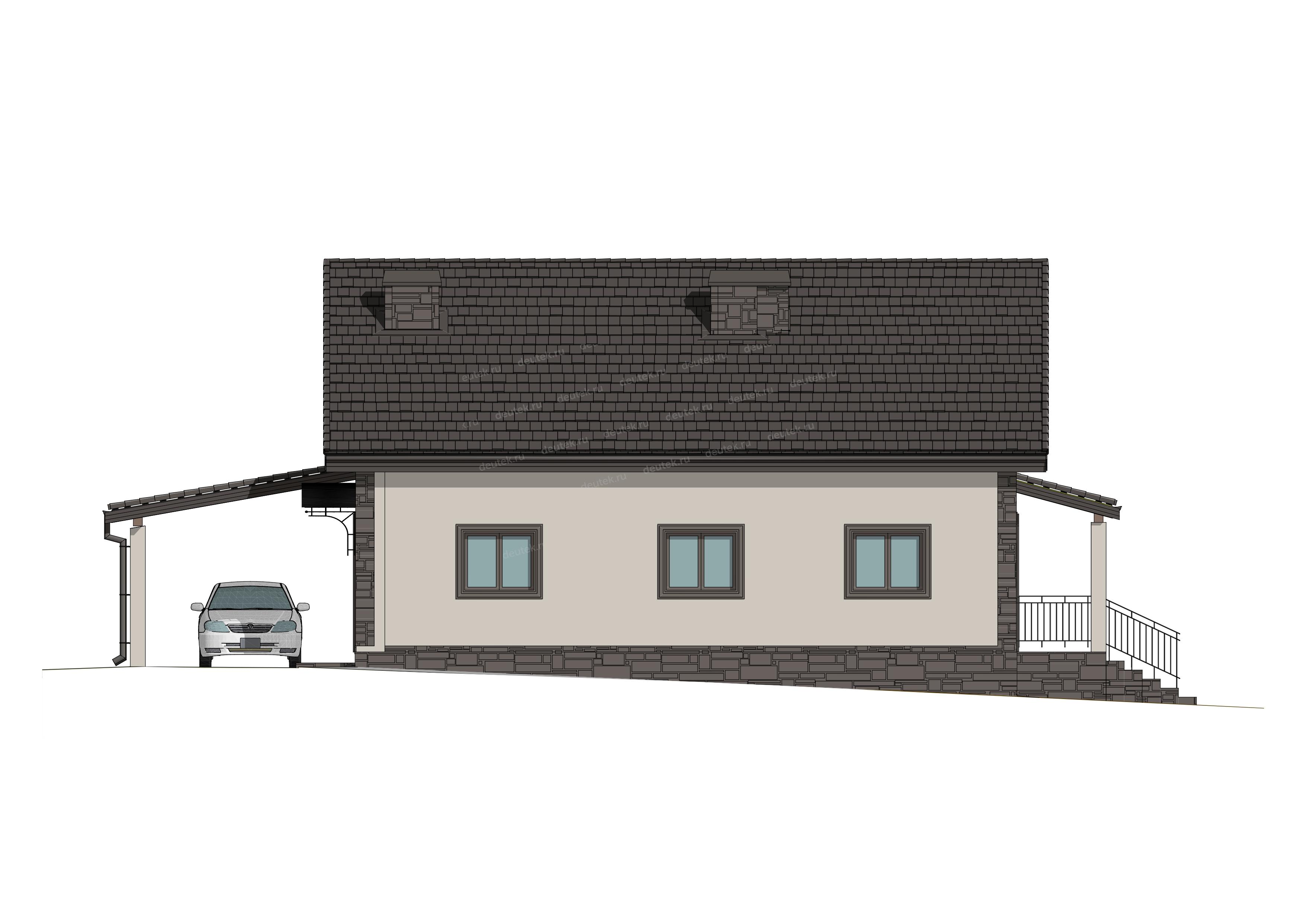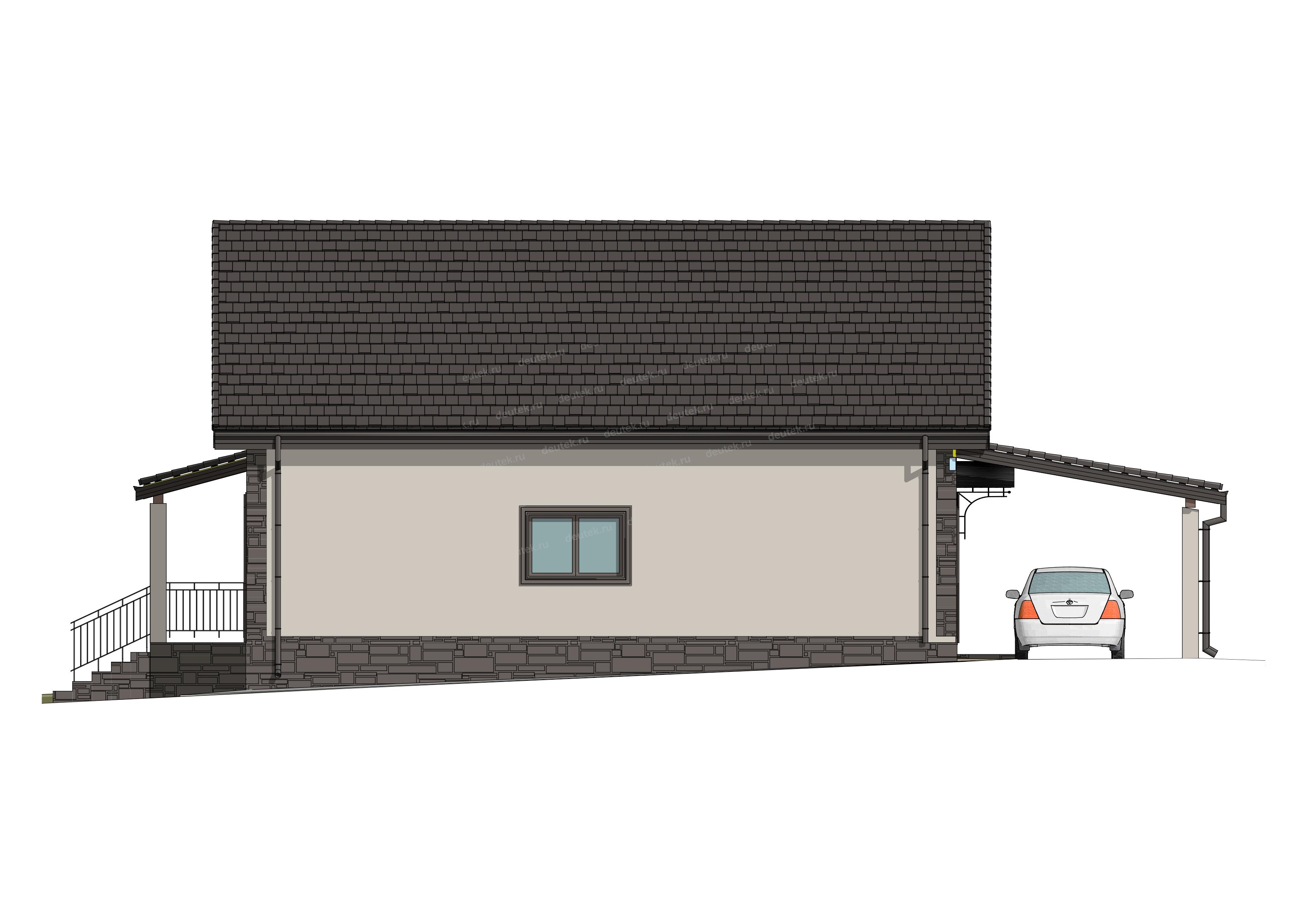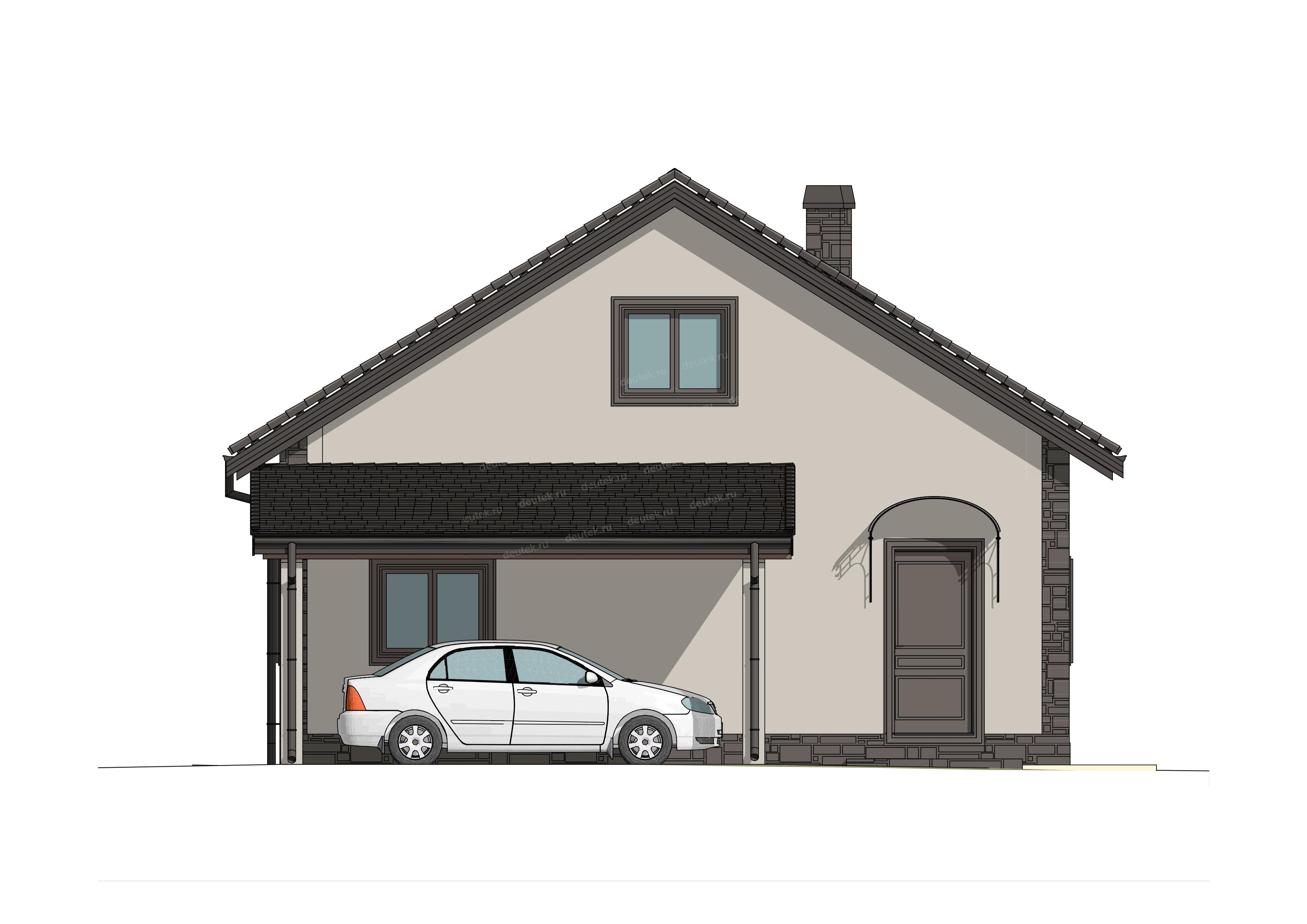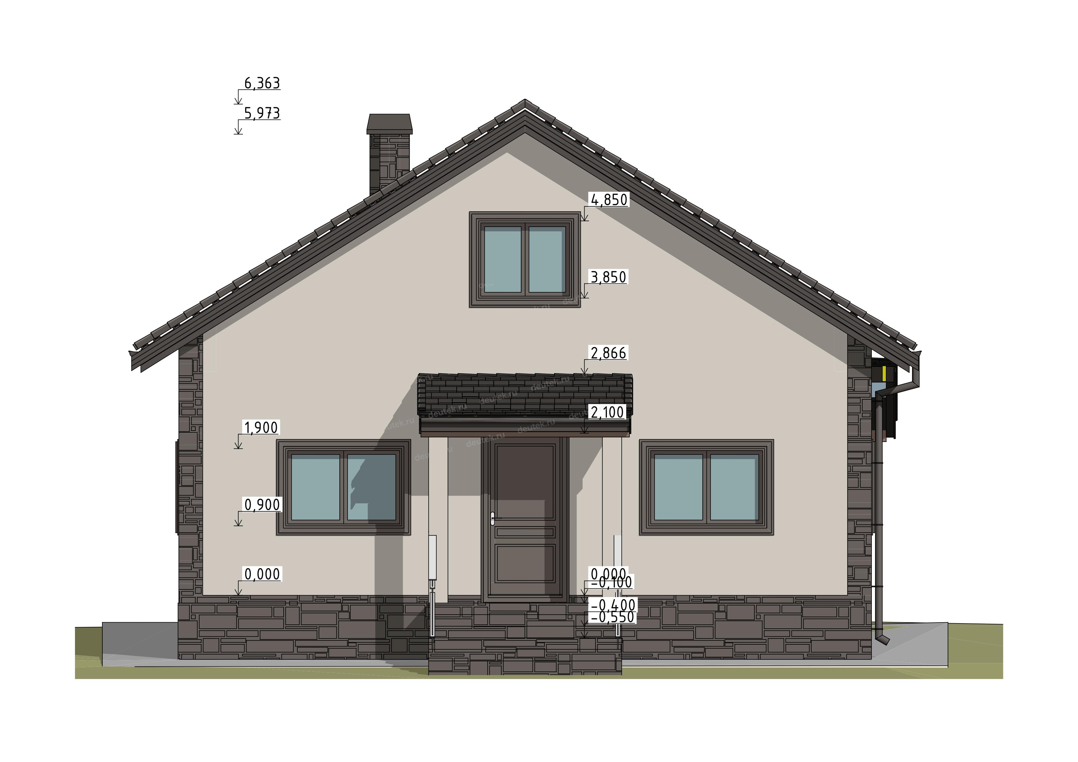 Фасад: | фасадная штукатурка с обрамлением окон и углов рустами; цоколь: декоративный камень |