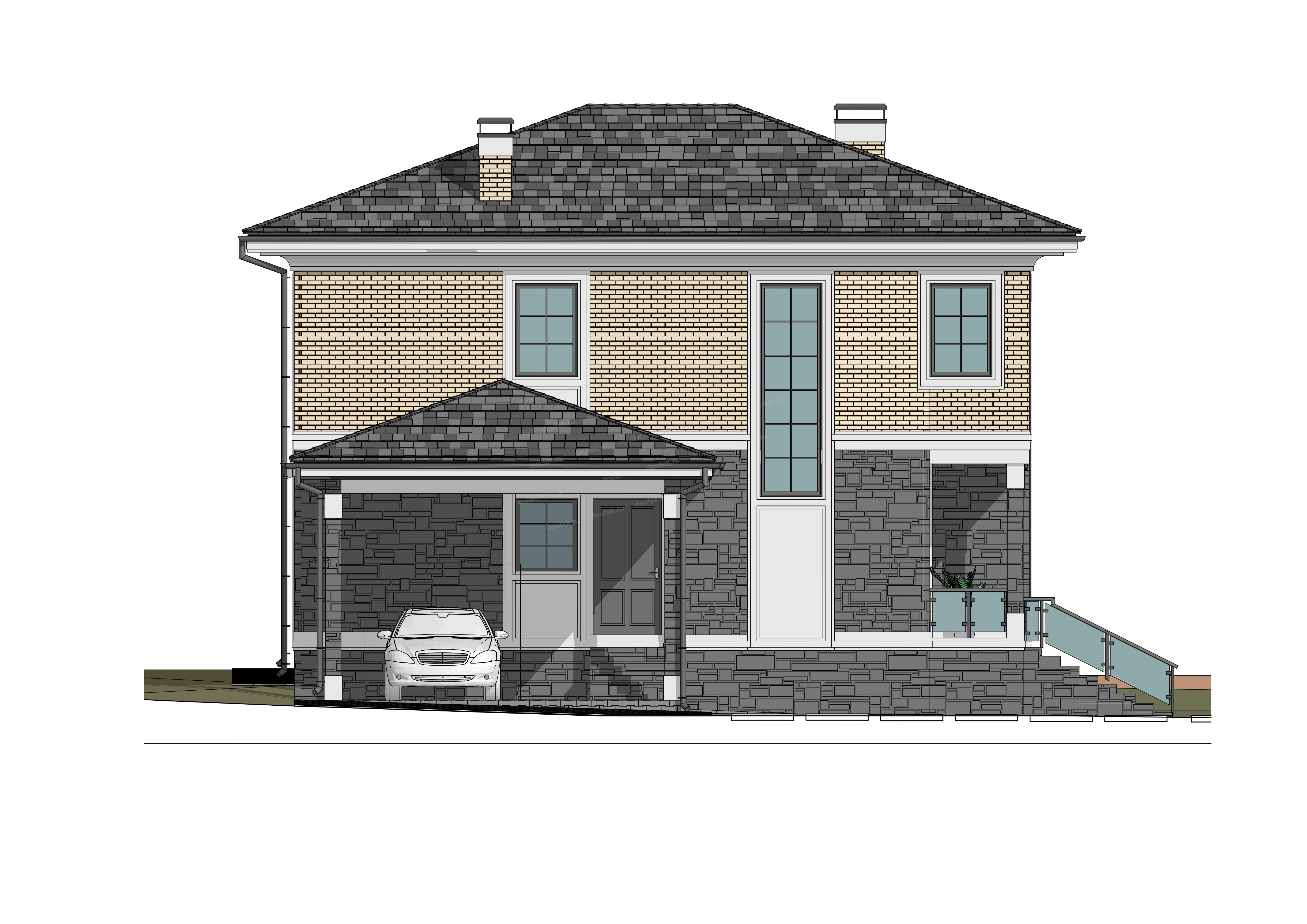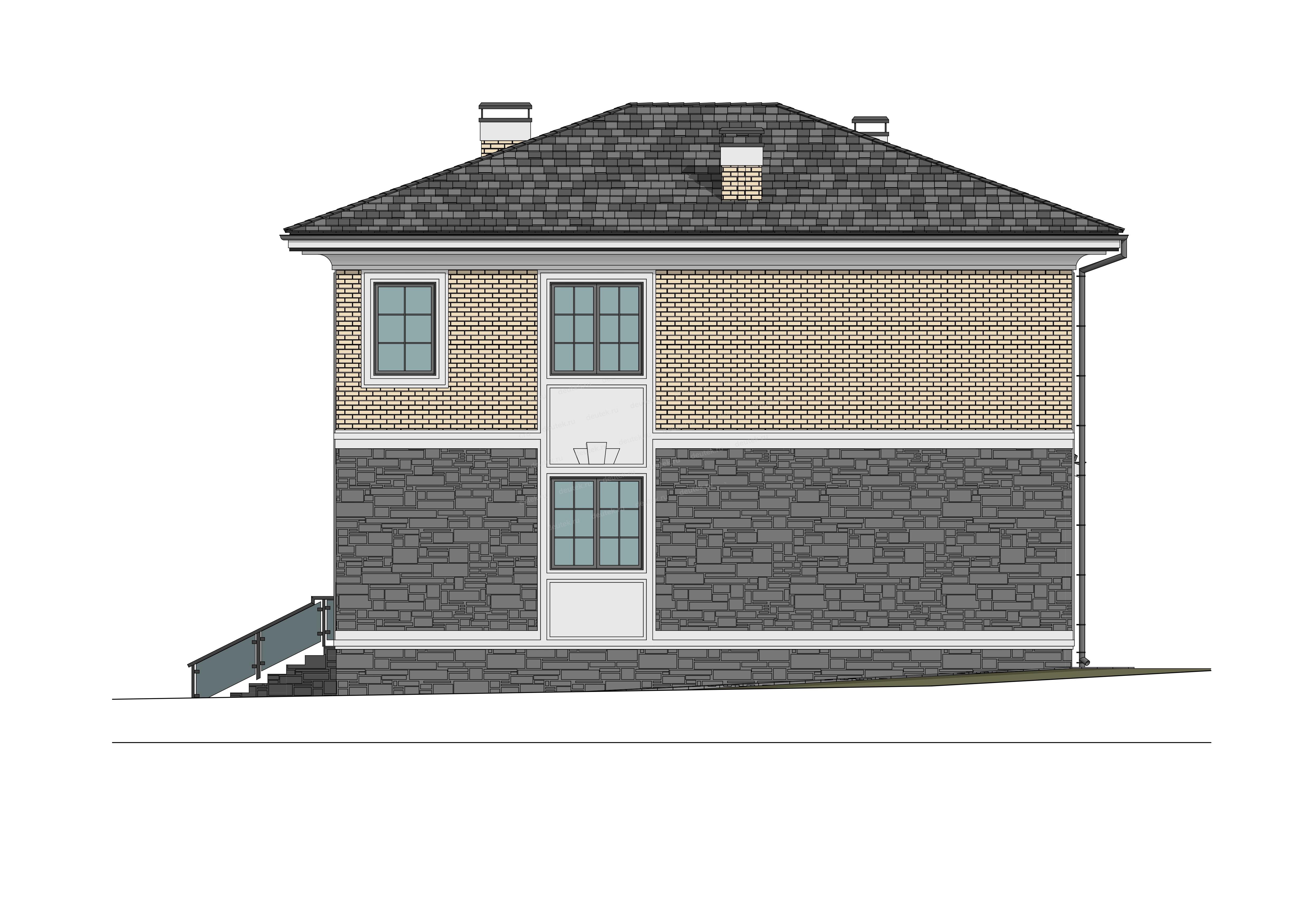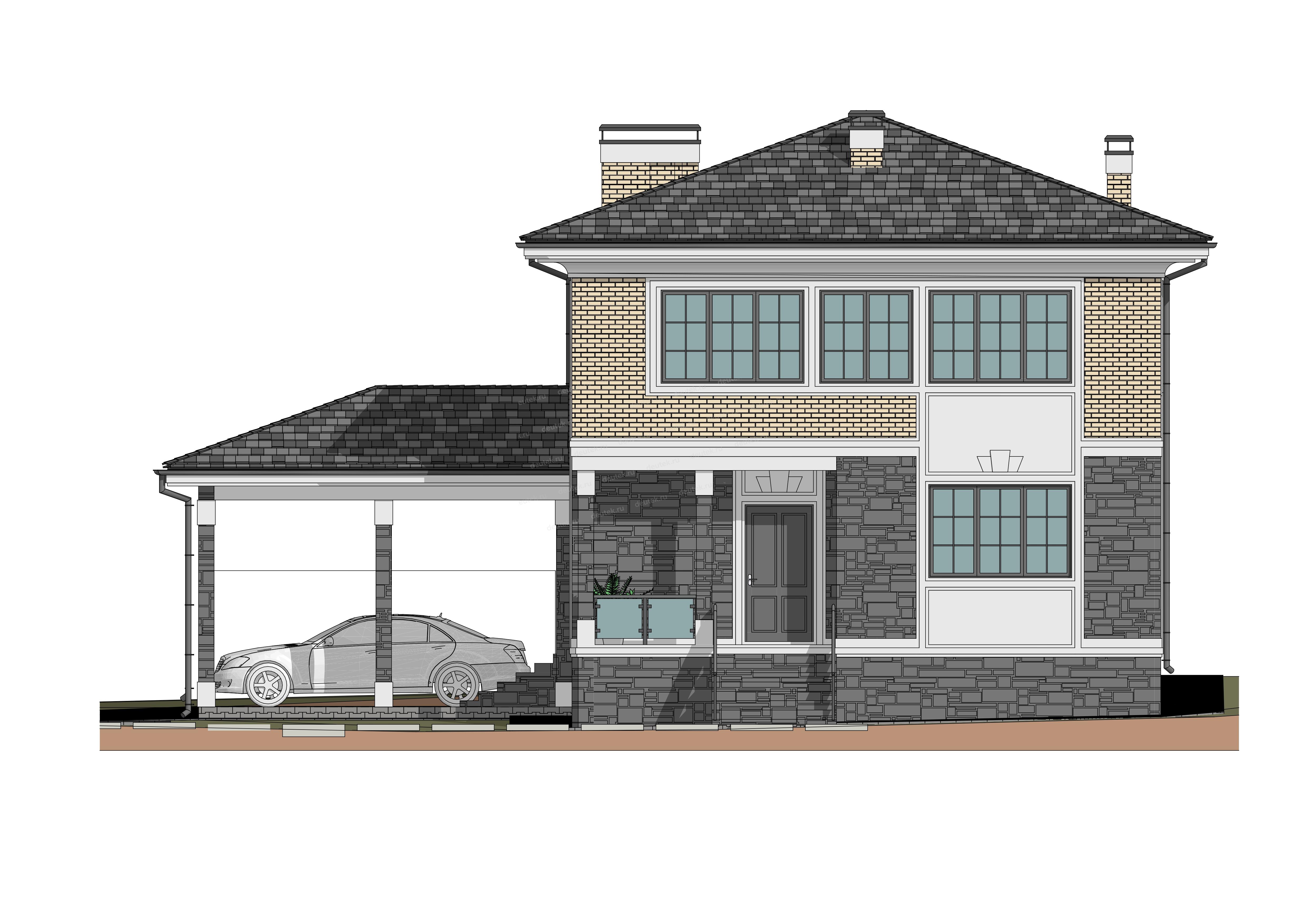 Фасад: | наружная отделка: клинкерная плитка, декоративный камень, цоколь: декоративный камень |