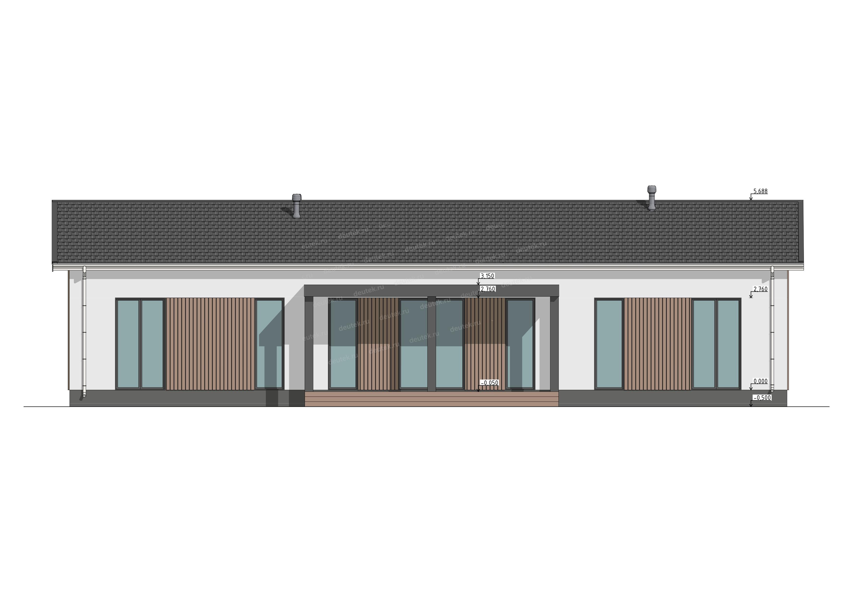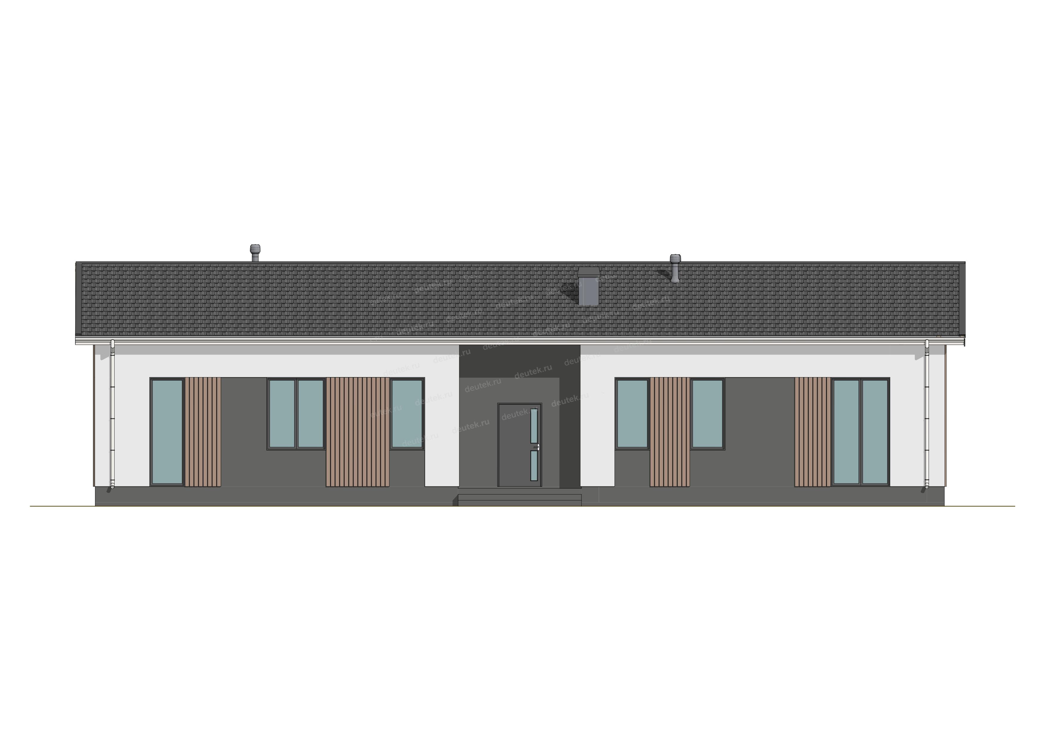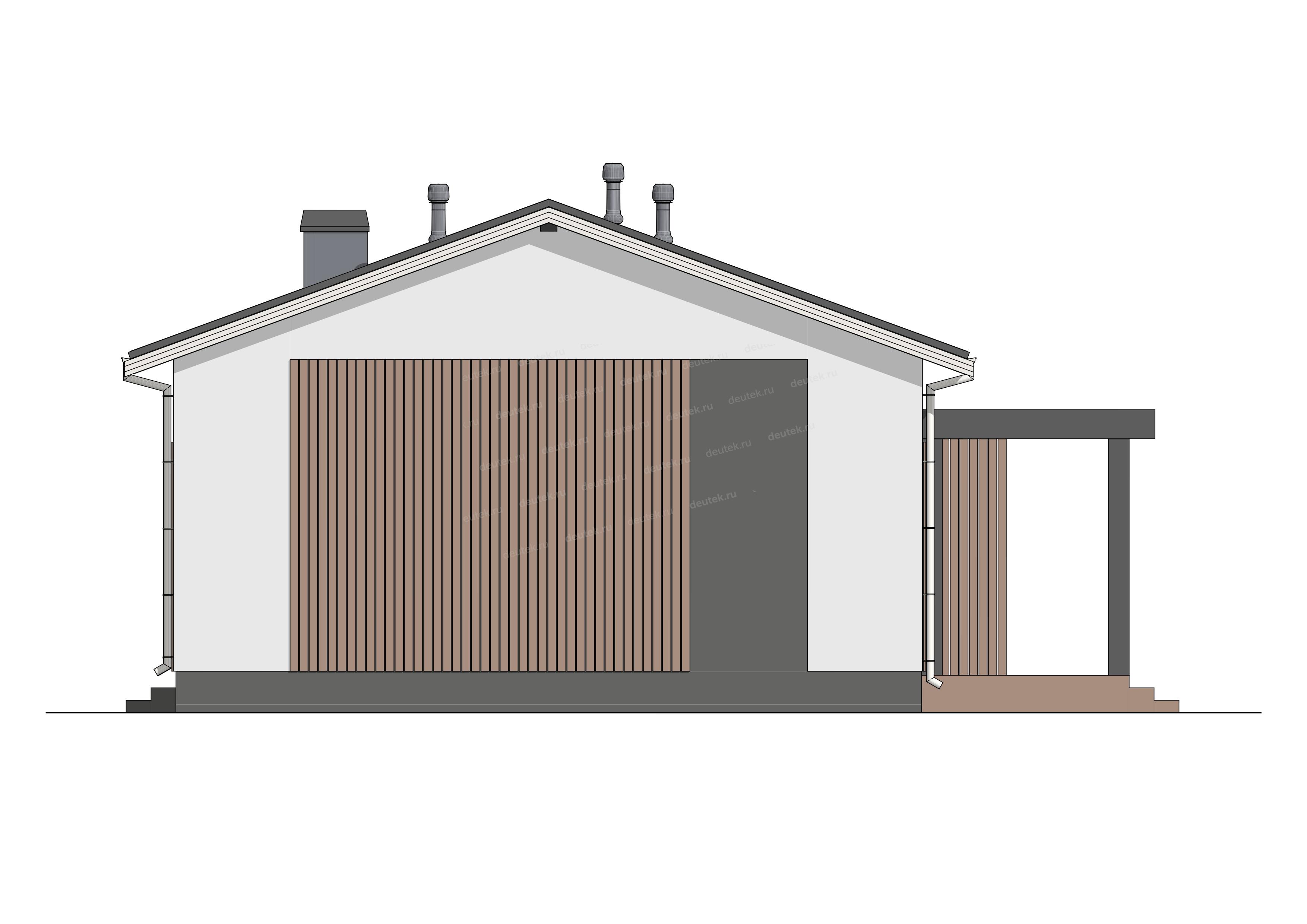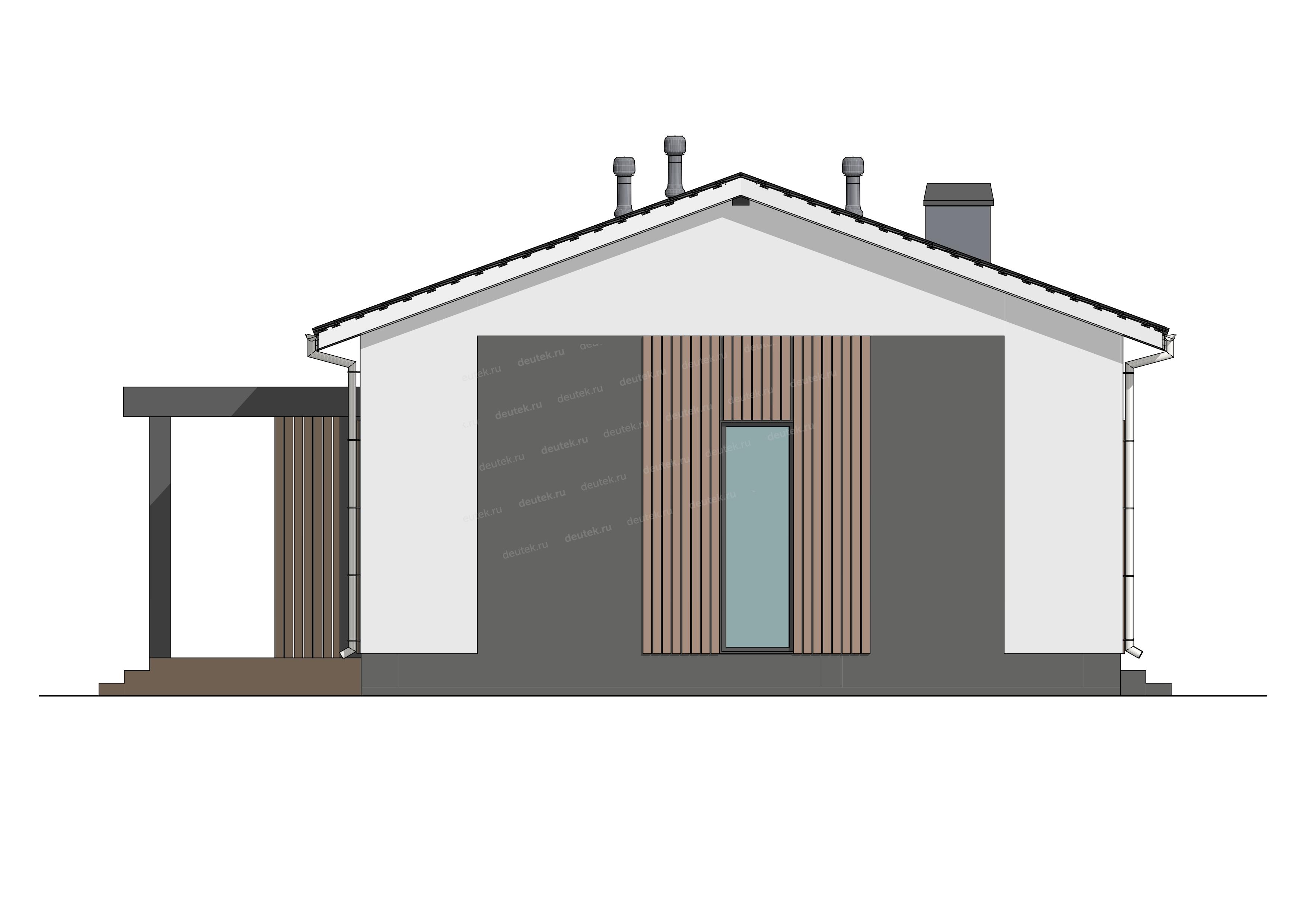 Фасад: | комбинированный: декоративная штукатурка белый и серый оттенки, планкен; цоколь - декоративный камень |