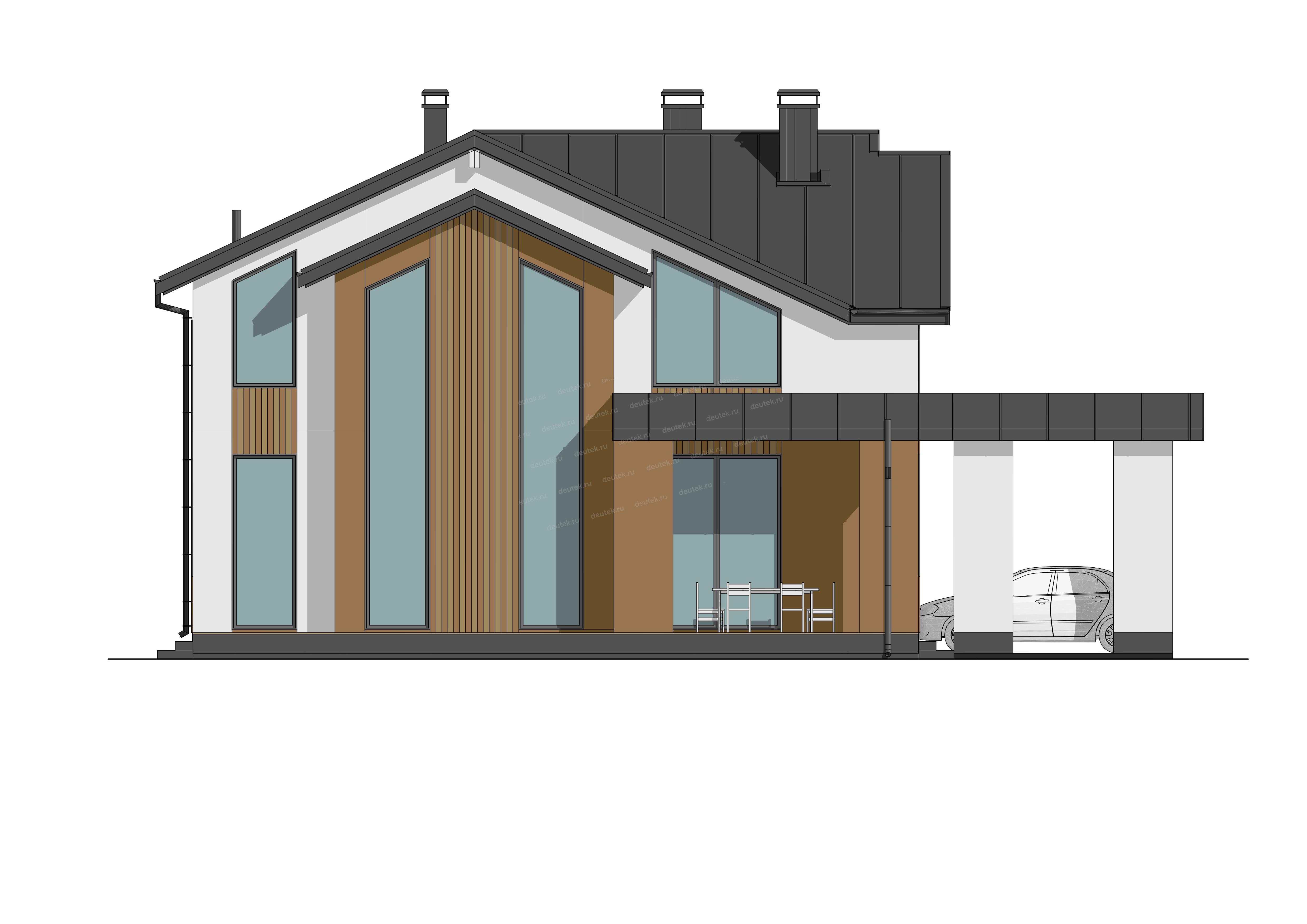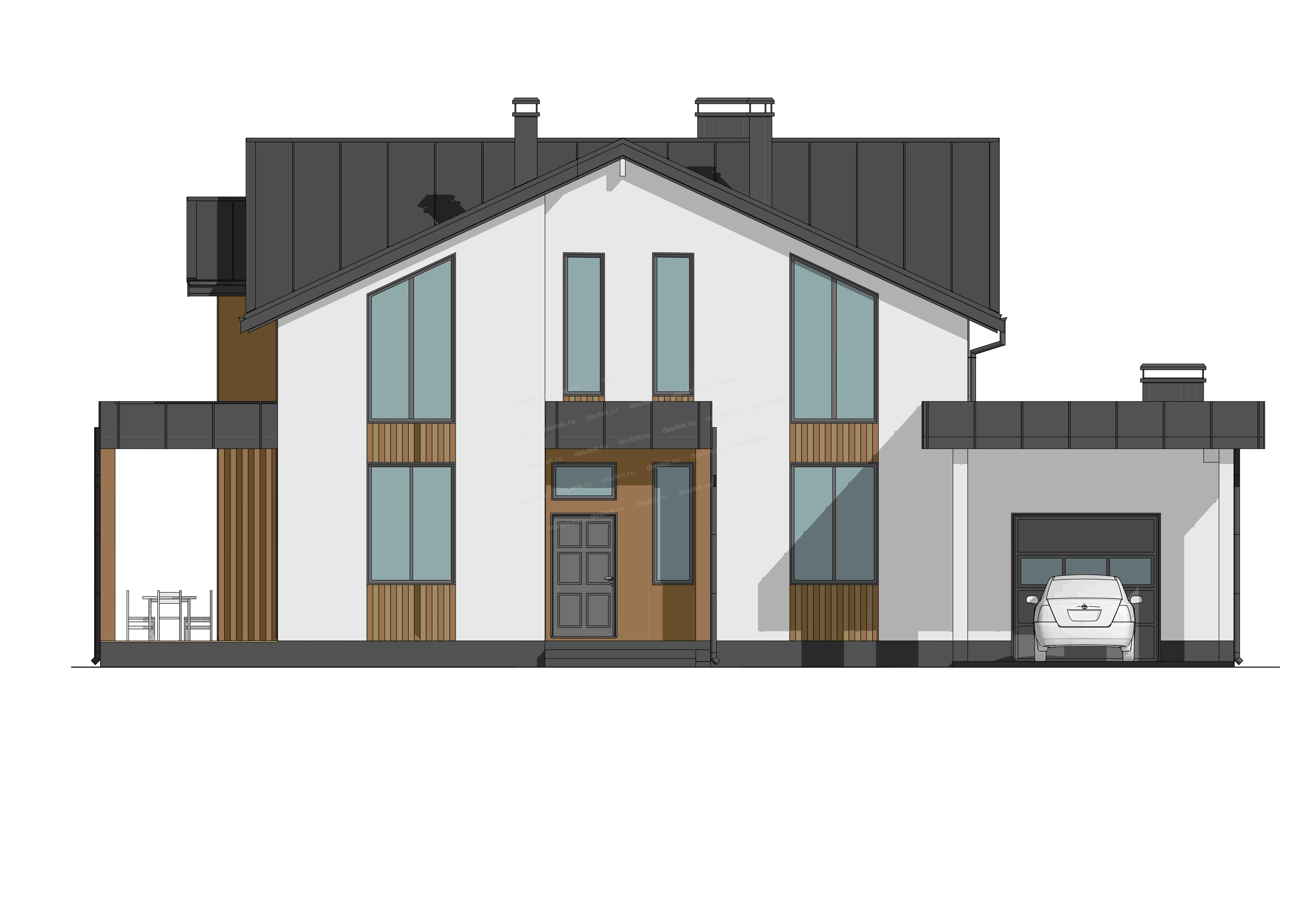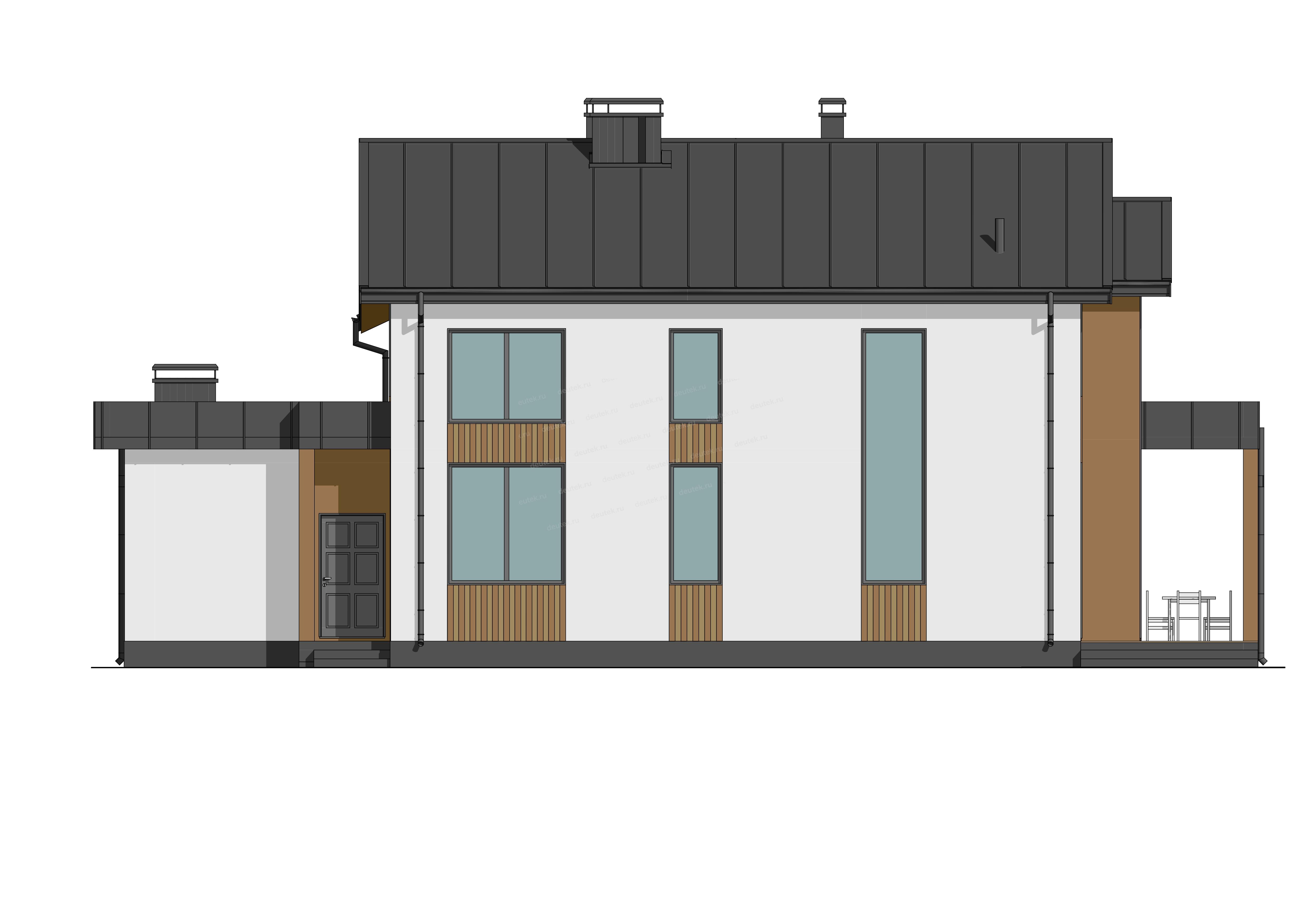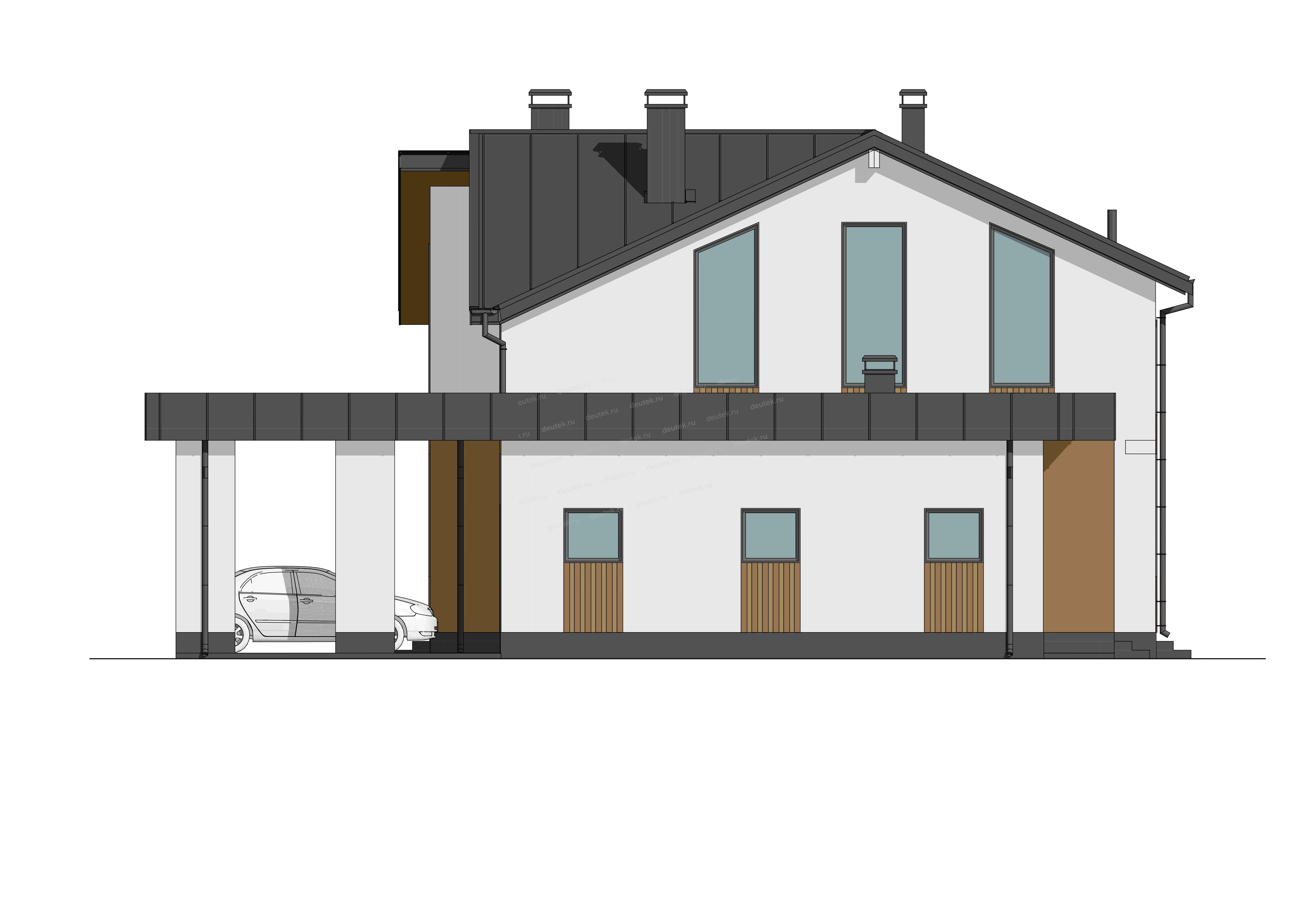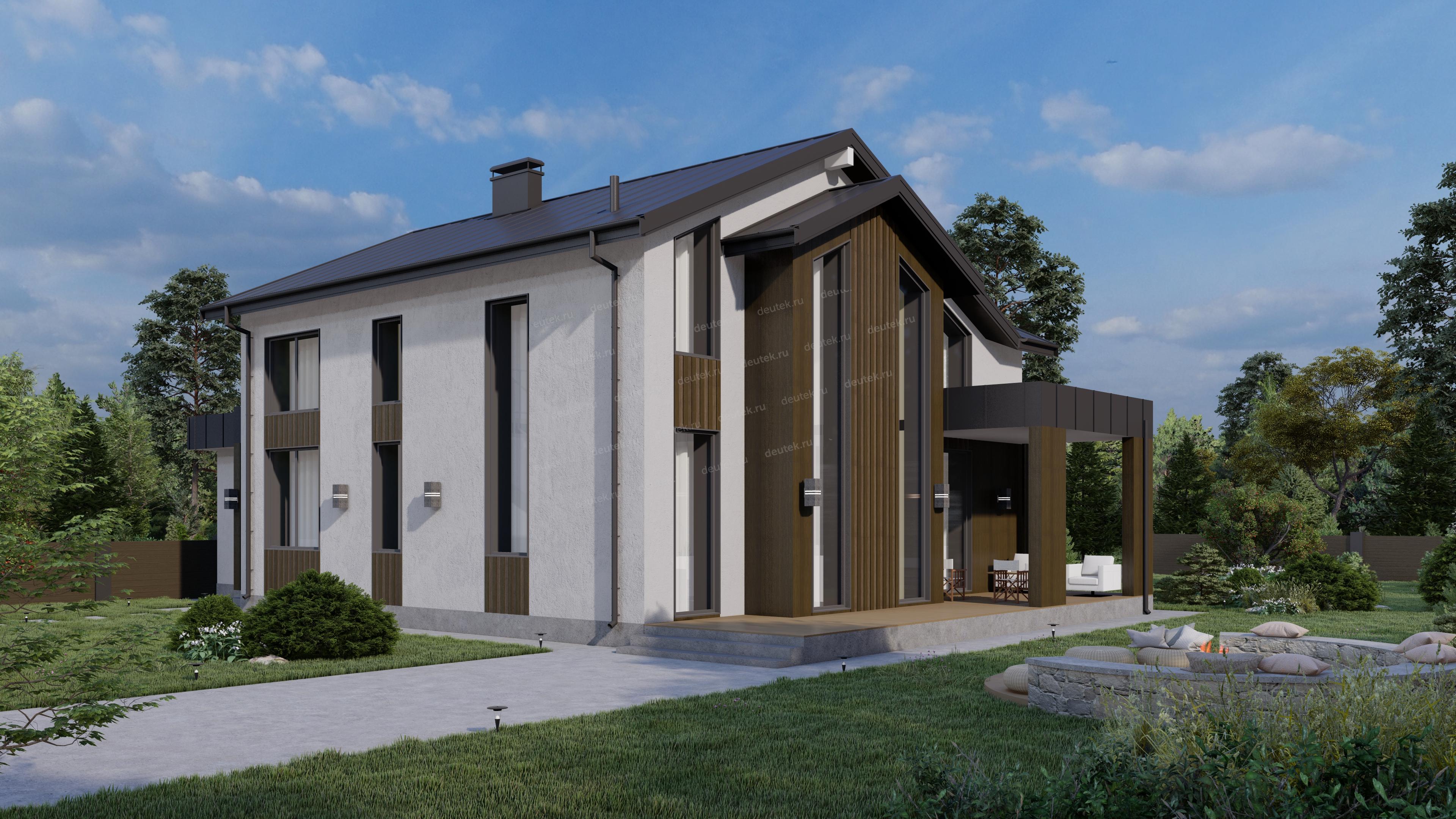 Фасад: | штукатурка, планкен, фальц; цоколь: штукатурка |