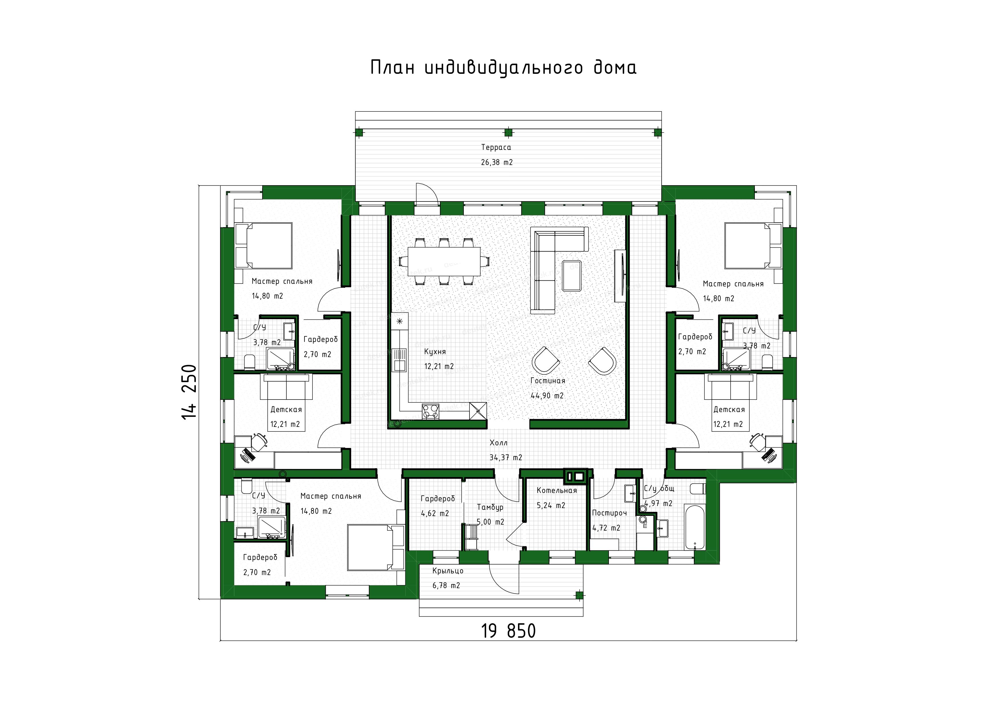 Фундамент: | монолитная ж/б плита - 300 мм с ростверком |