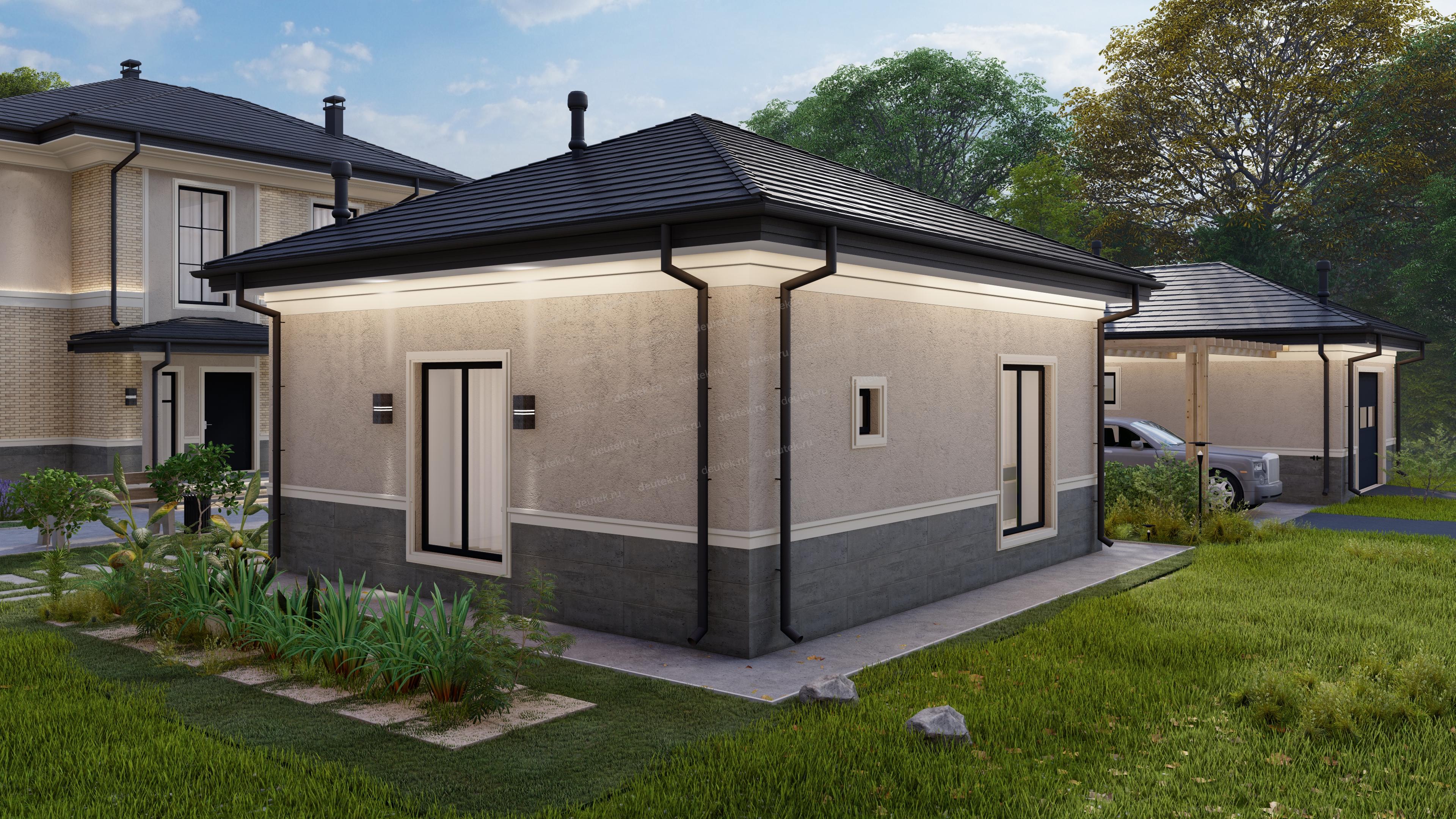 Фасад: | наружная отделка - штукатурка, цоколь - керамогранит |
