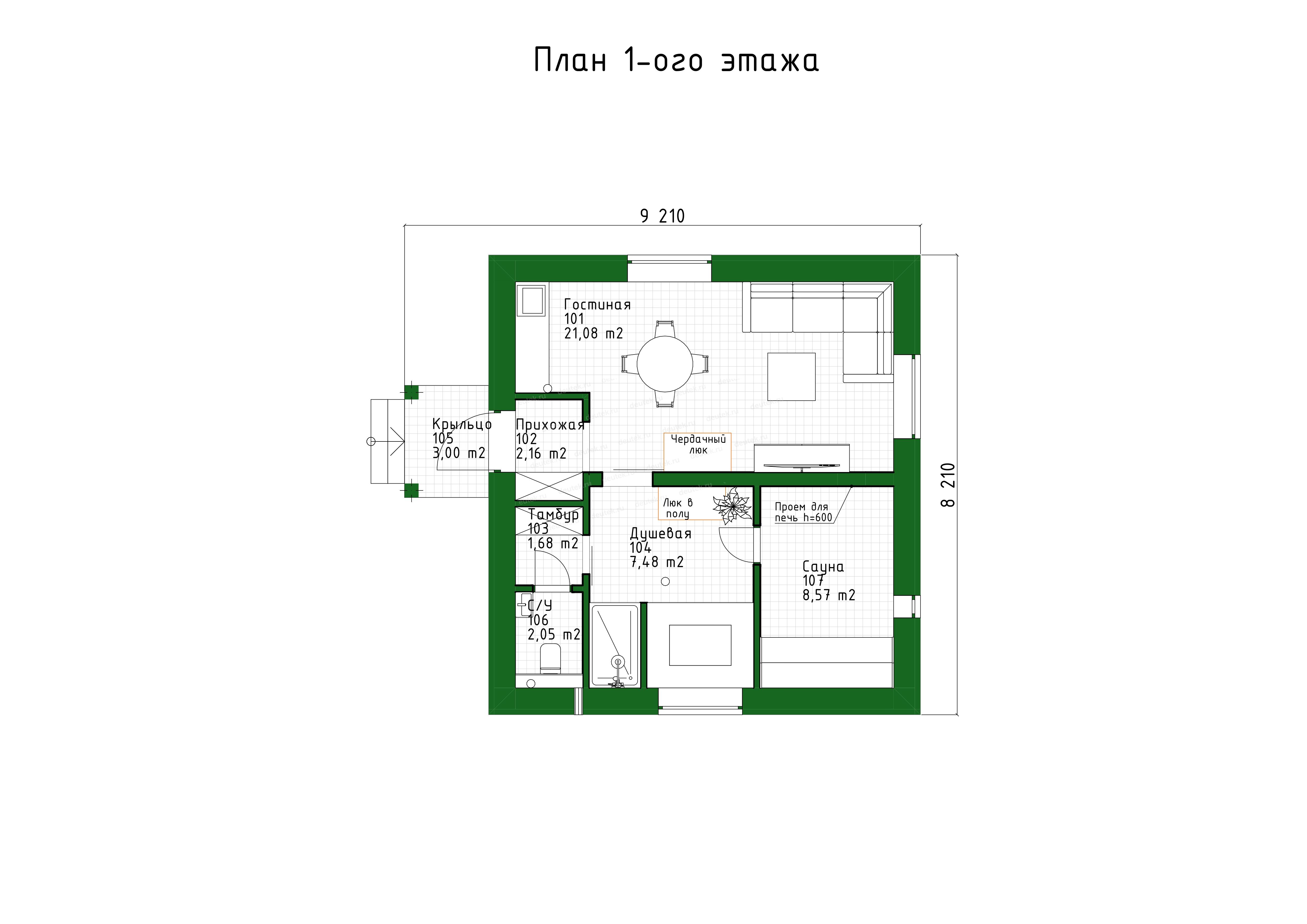 Перекрытия: | перекрытие 1-го этажа – по деревянным балкам - 200 мм |