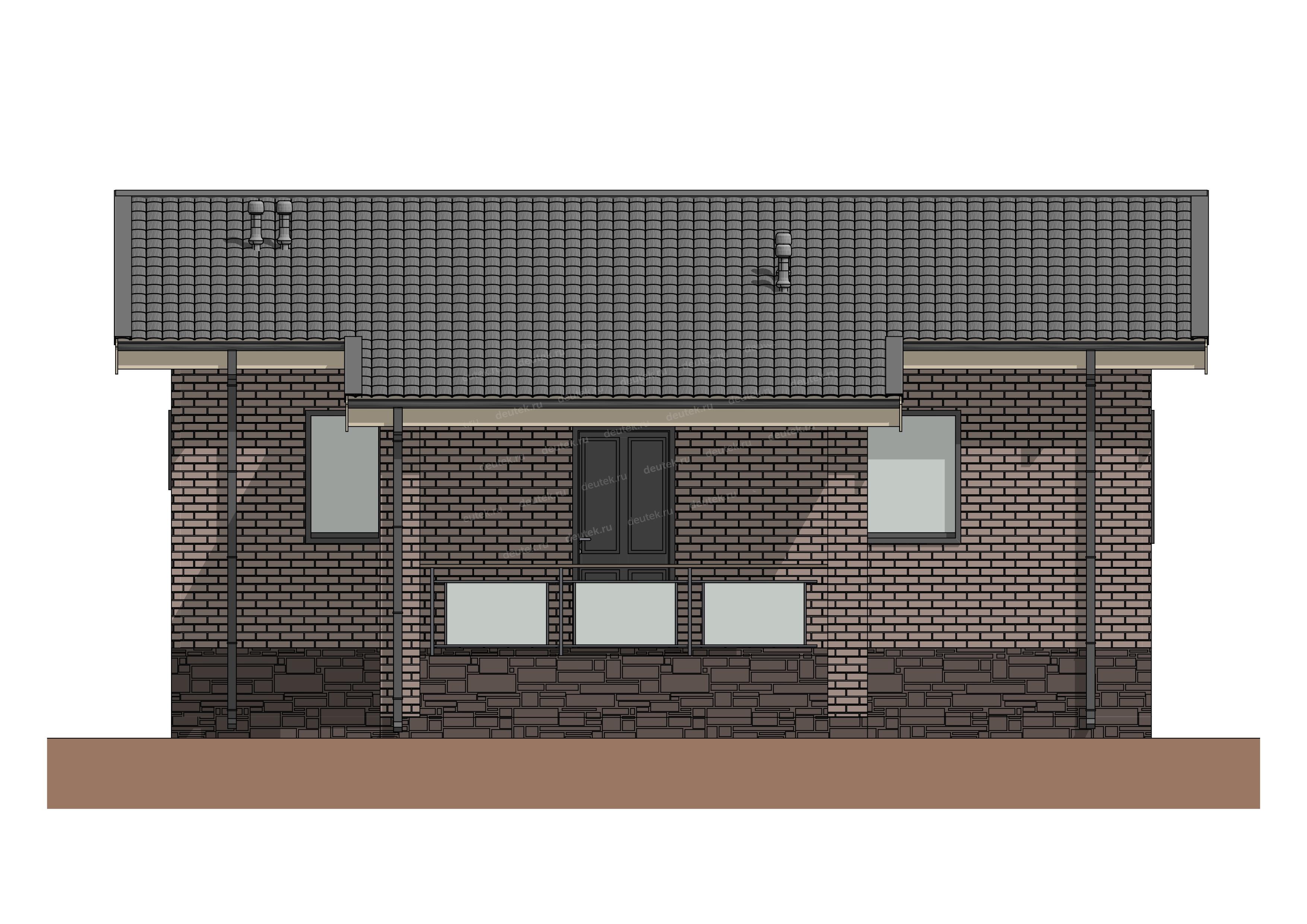 Фасад: | облицовочный кирпич, цоколь - декоративный камень |