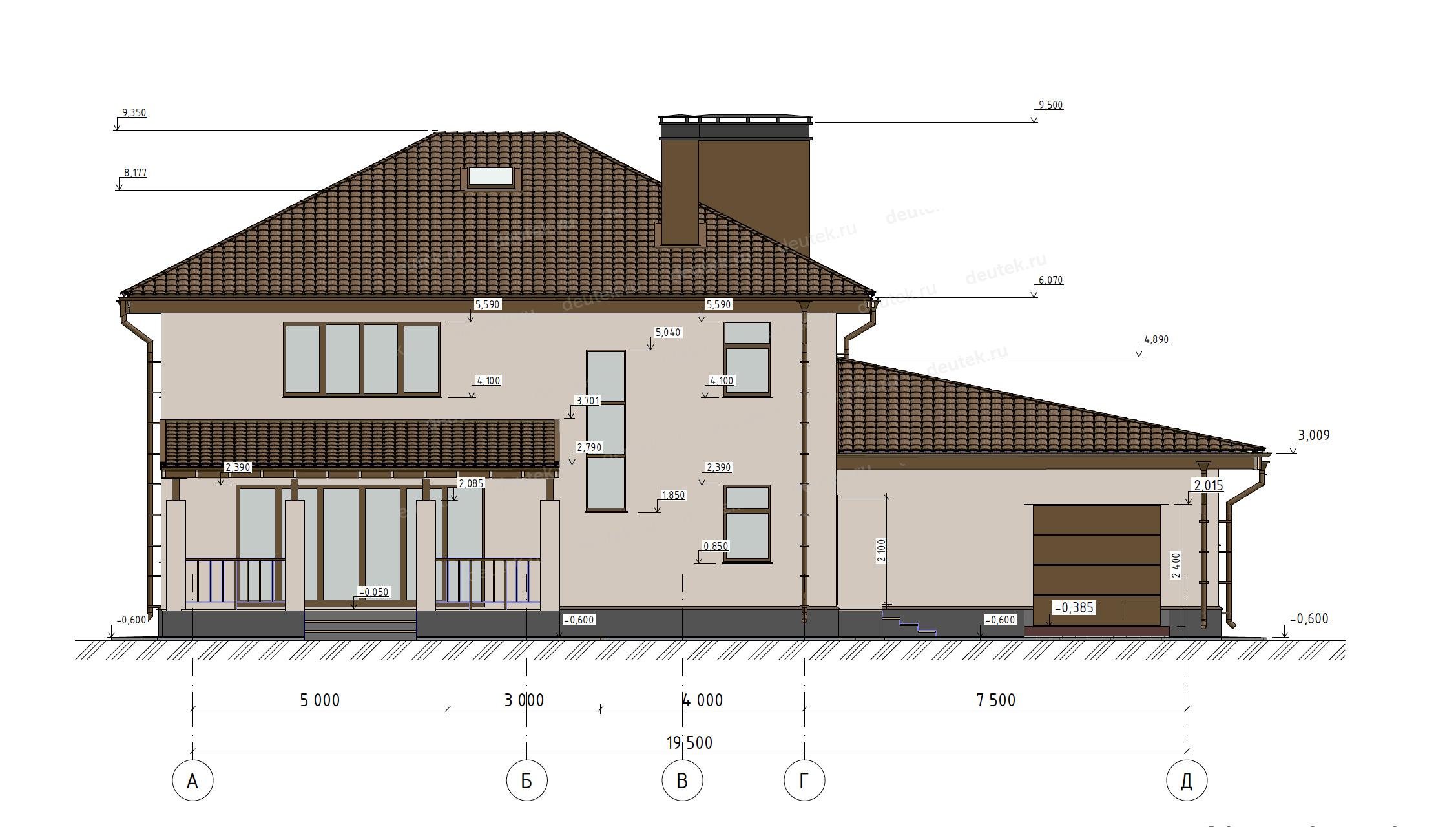 Фасад: | наружная отделка - облицовочный кирпич, цоколь - декоративный камень |