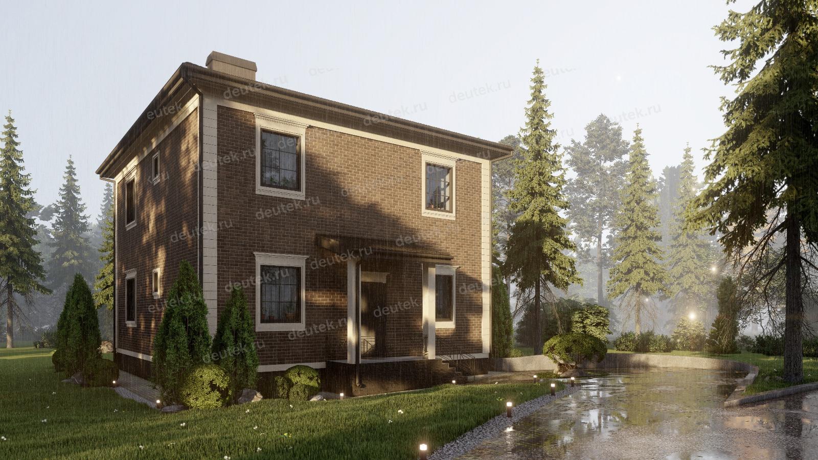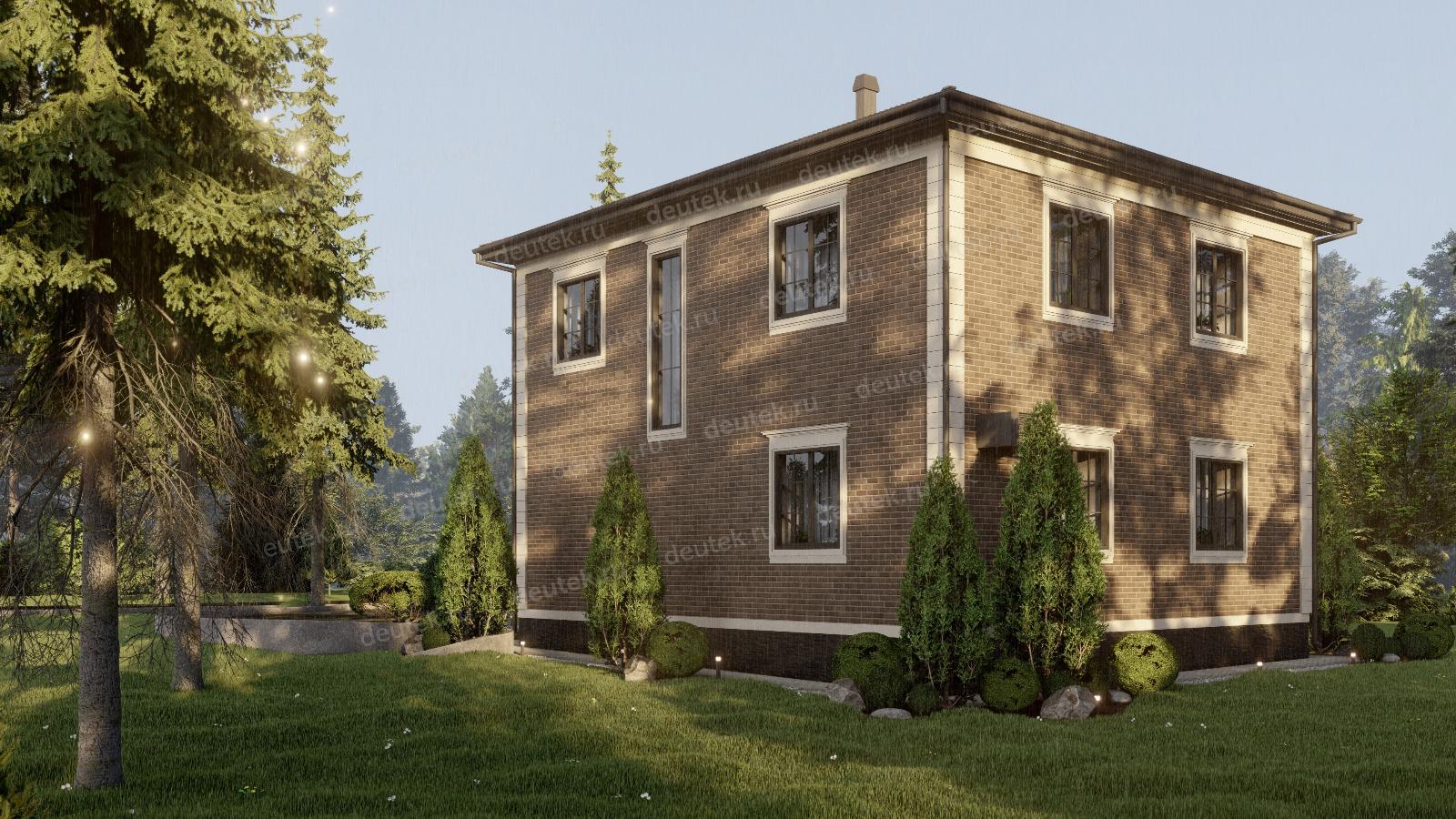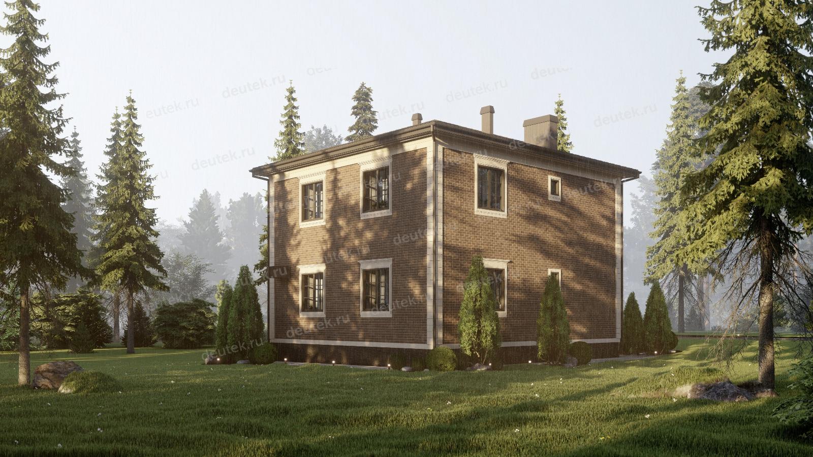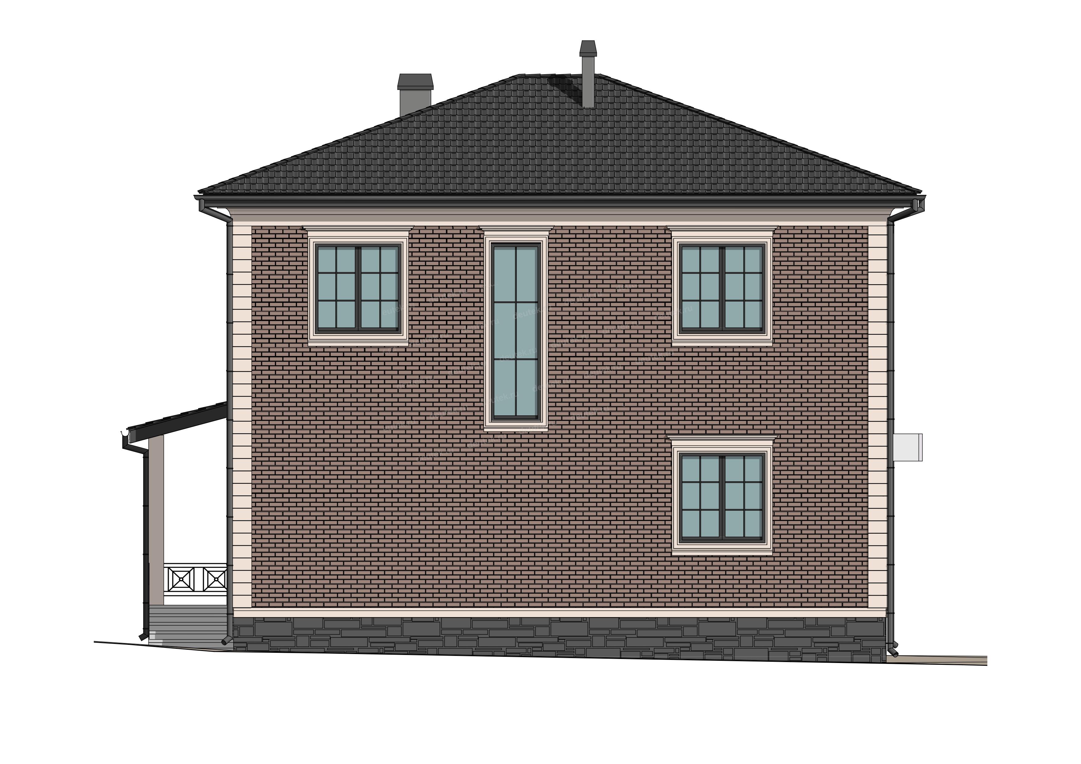 Фасад: | наружная отделка - облицовочный кирпич с декоративным обрамлением углов и окон молдингом, цоколь - декоративный камень |