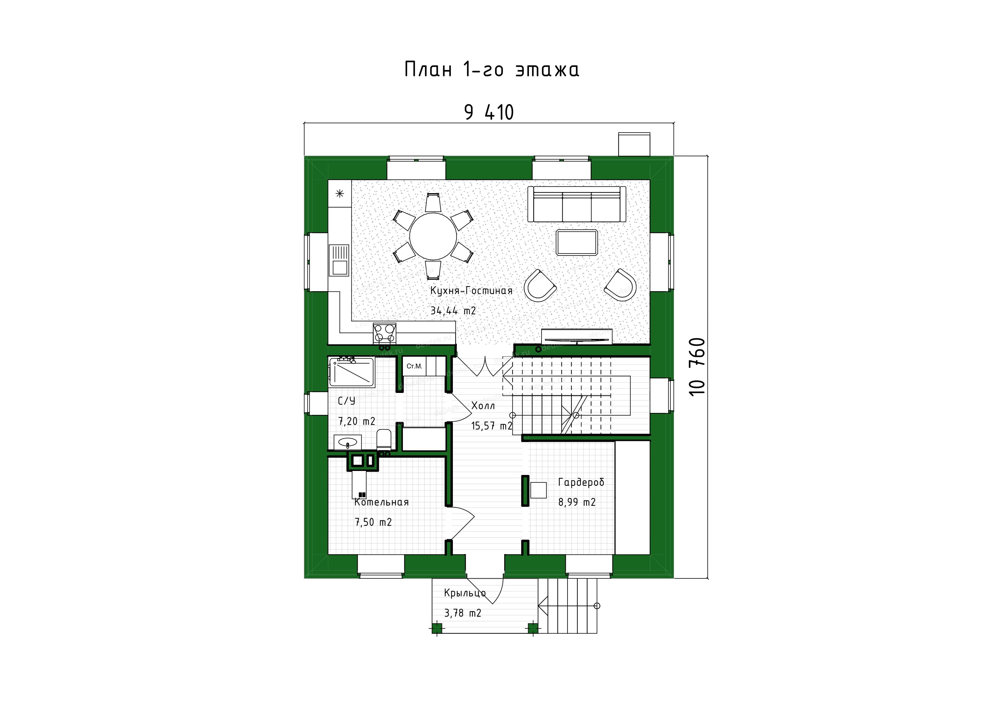 Габариты дома: | 9.41 x 10.76 м |