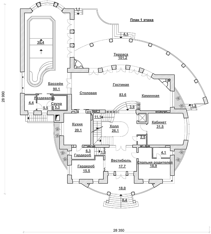 | Фасад: | монолитные ж.б. с облицовкой природным камнем |