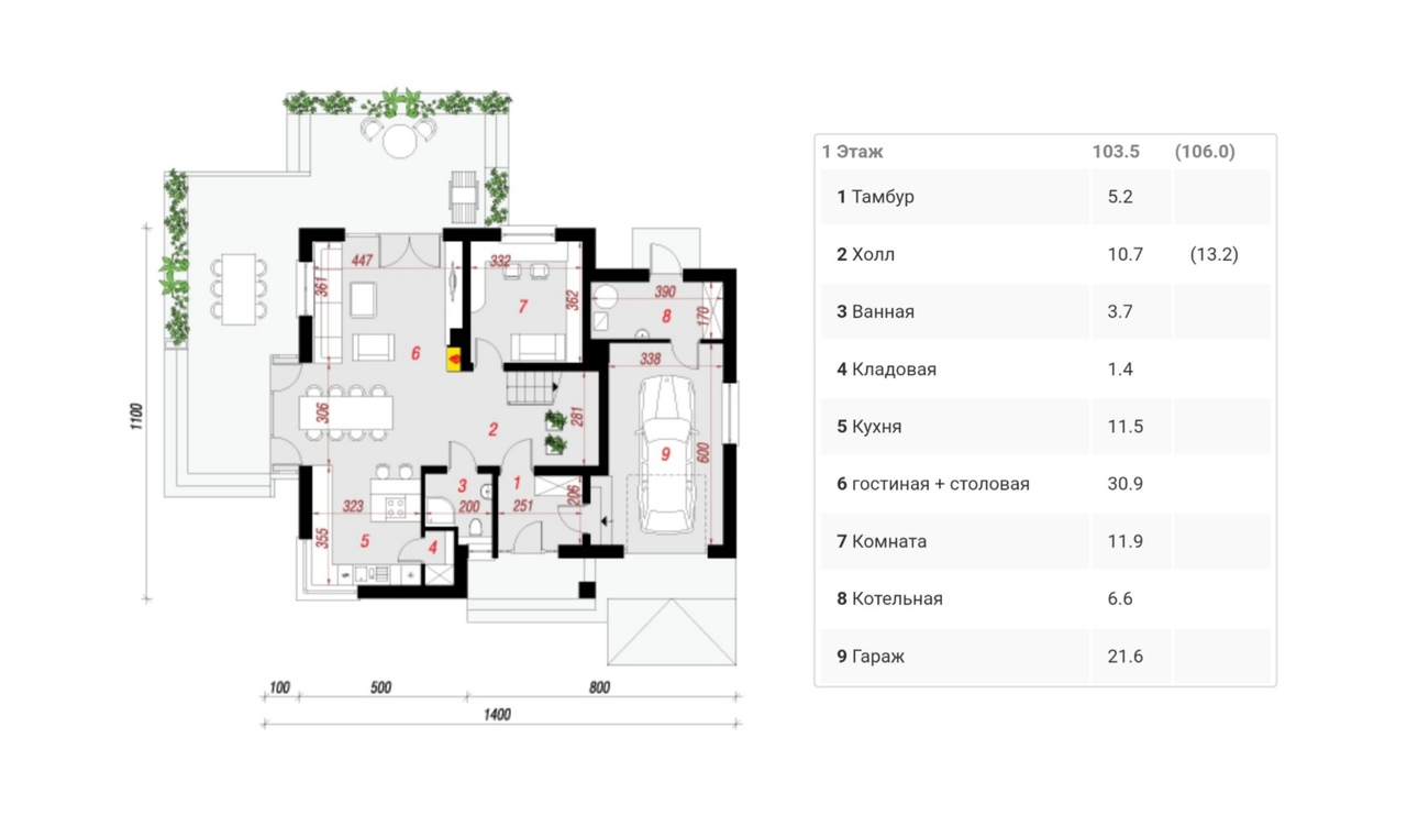 | Терраса на 1-м этаже | есть |